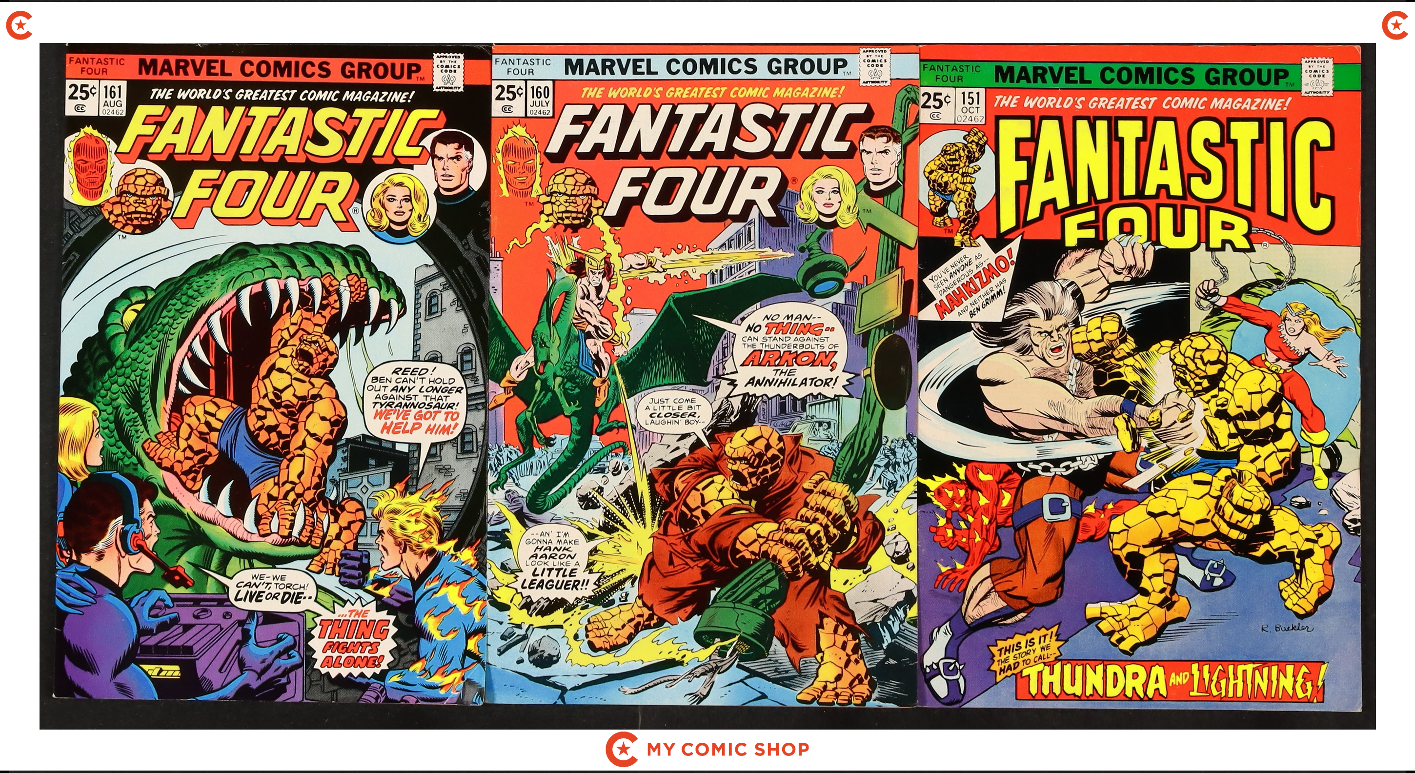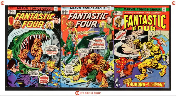 Issues 148, 149, 150, 151, 154, 160, 161, 162, and 163 of Fantastic Four (1961 1st Series). Most will grade in the VG to FN range.