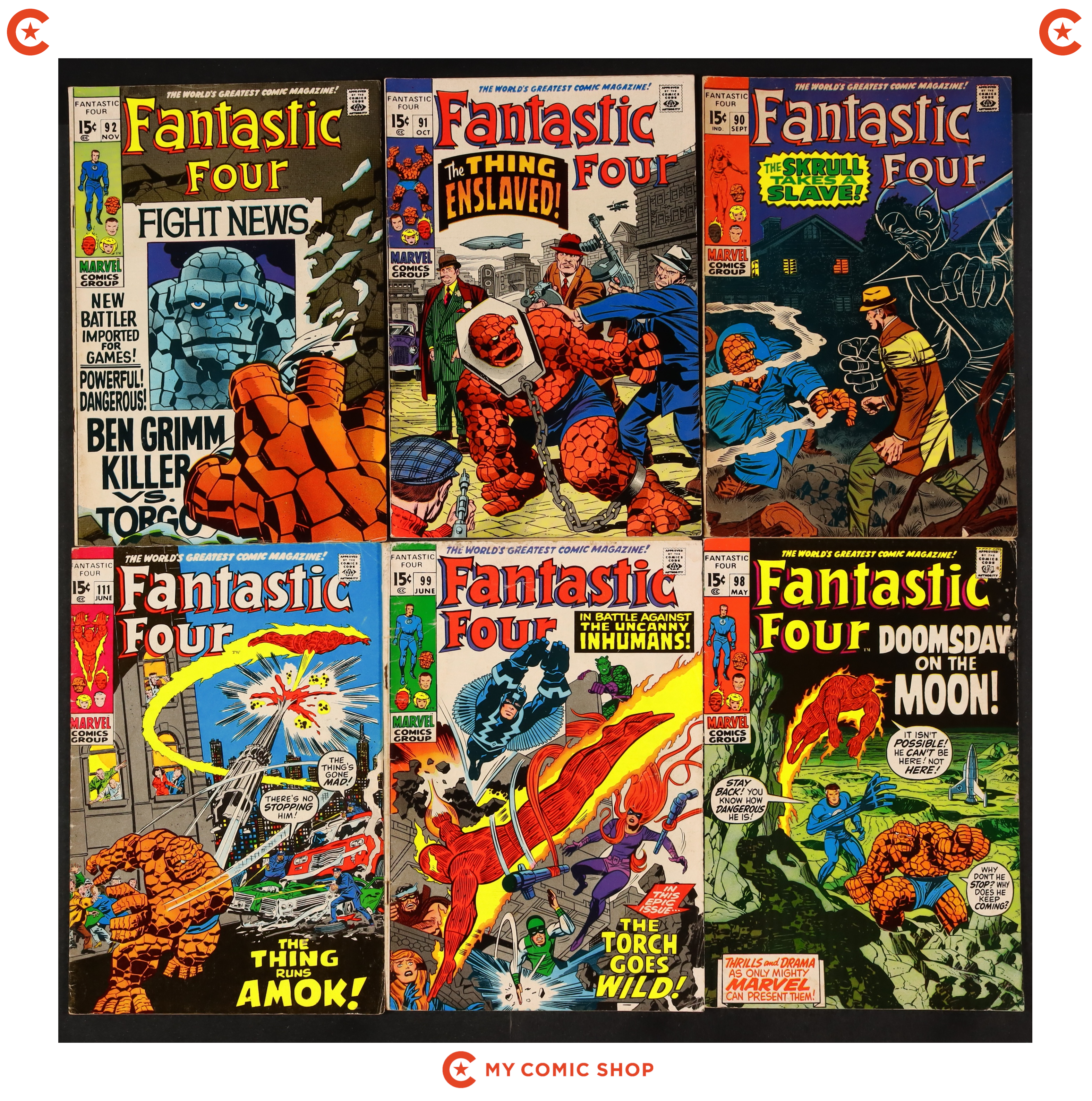 Issues 93, 95, 96, 97, 98, 99 of Fantastic Four (1961 1st Series). Most will grade in the GD- to VG range.