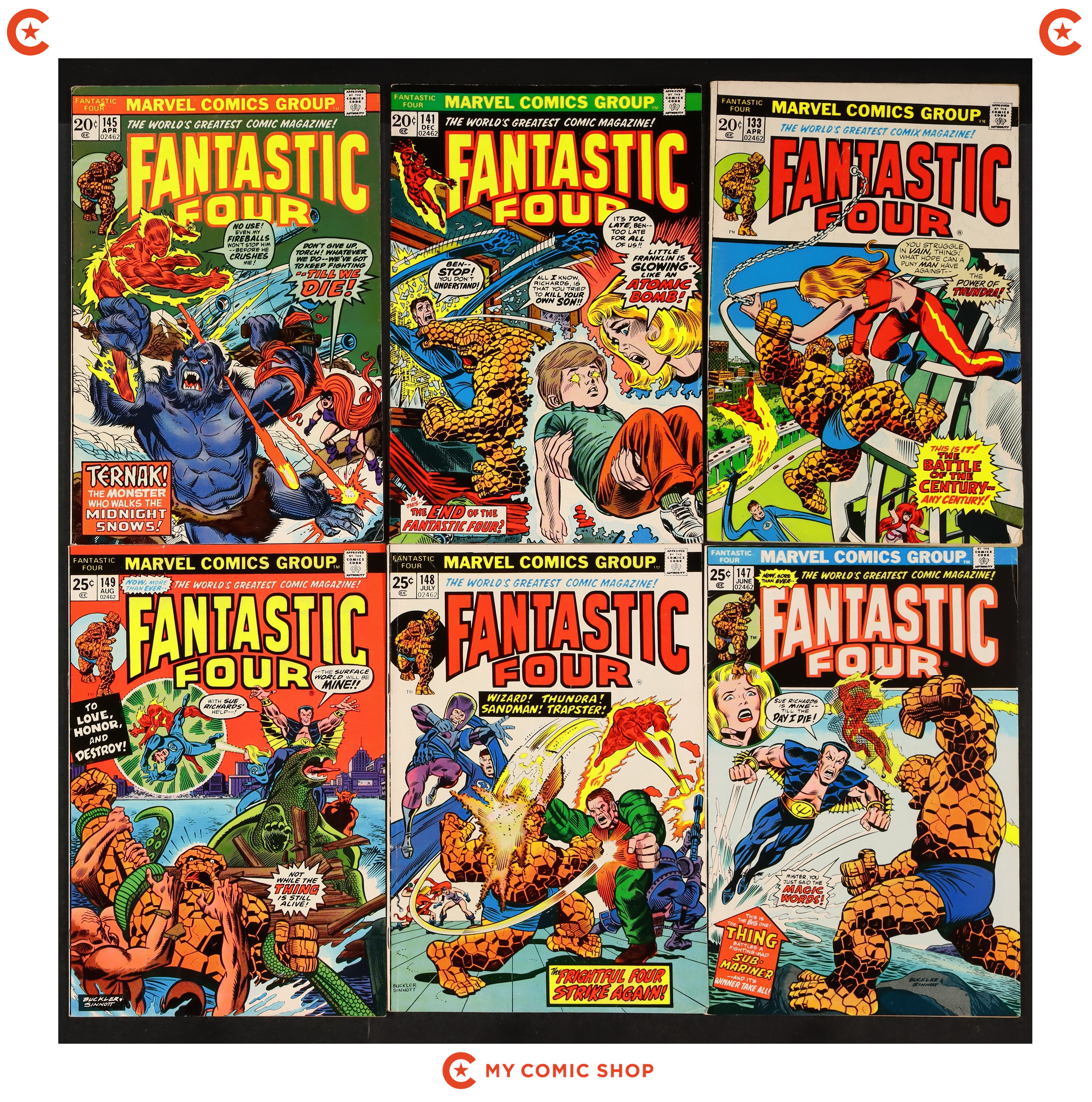 Issues 118, 119, 125, 131, 135, 138, 139, 141, 143, 157, 158, 164, 169, 171 of Fantastic Four (1961 1st Series), and issues 9, 11 of Fantastic Four (1961 1st Series) Annual. Most will grade in the VG to FN range.