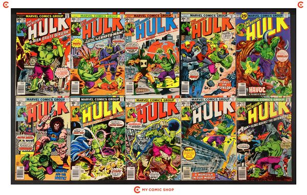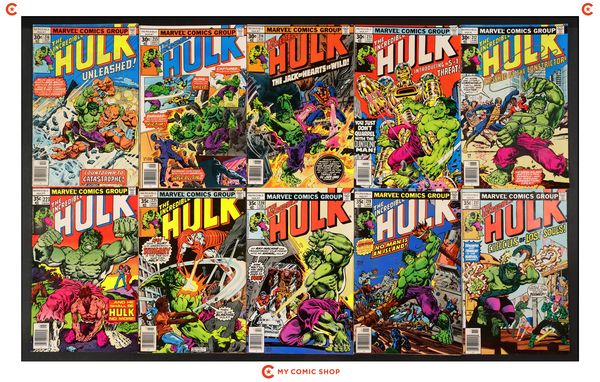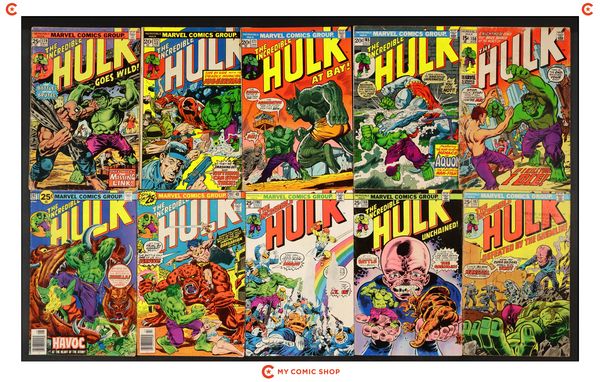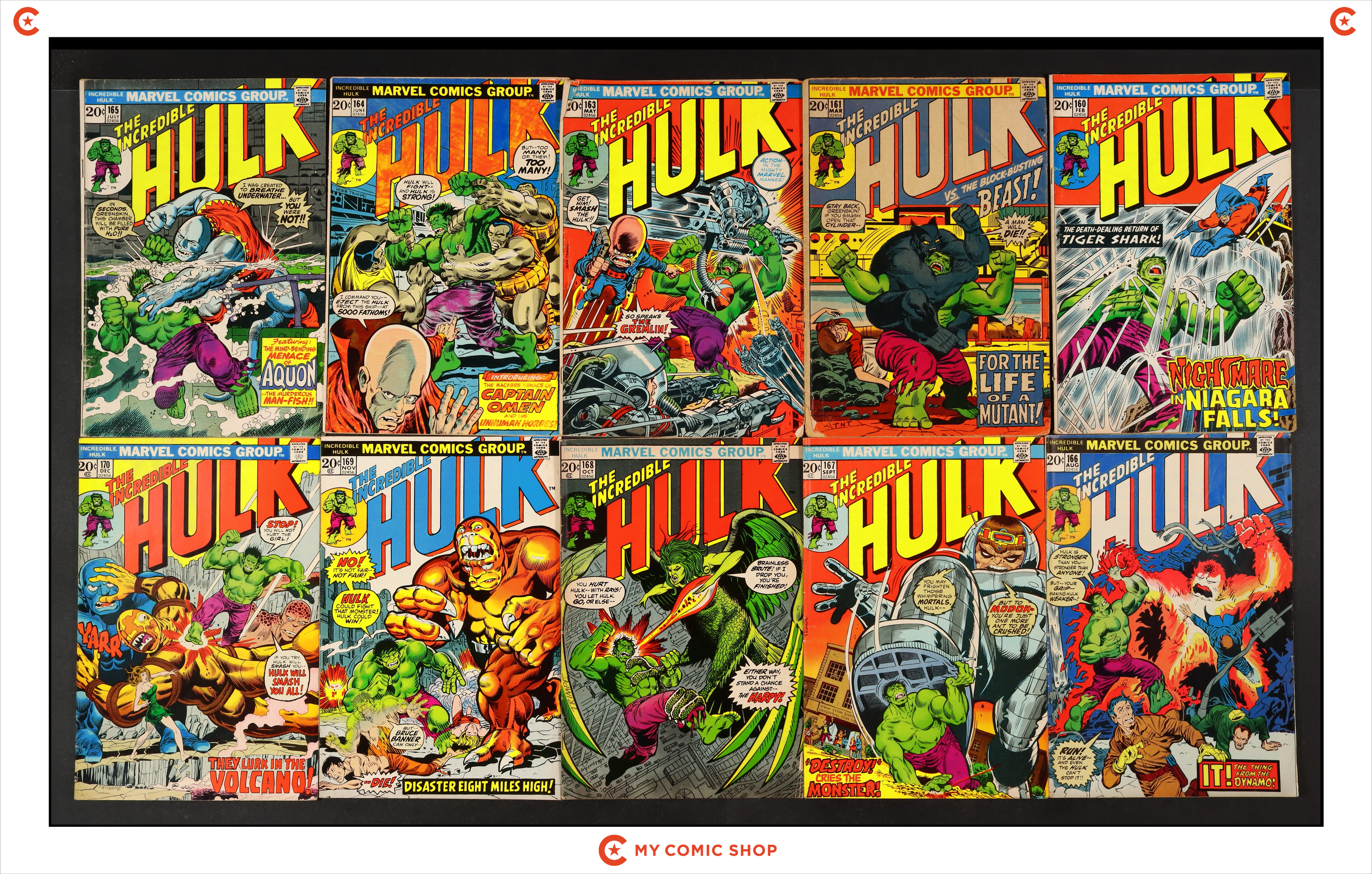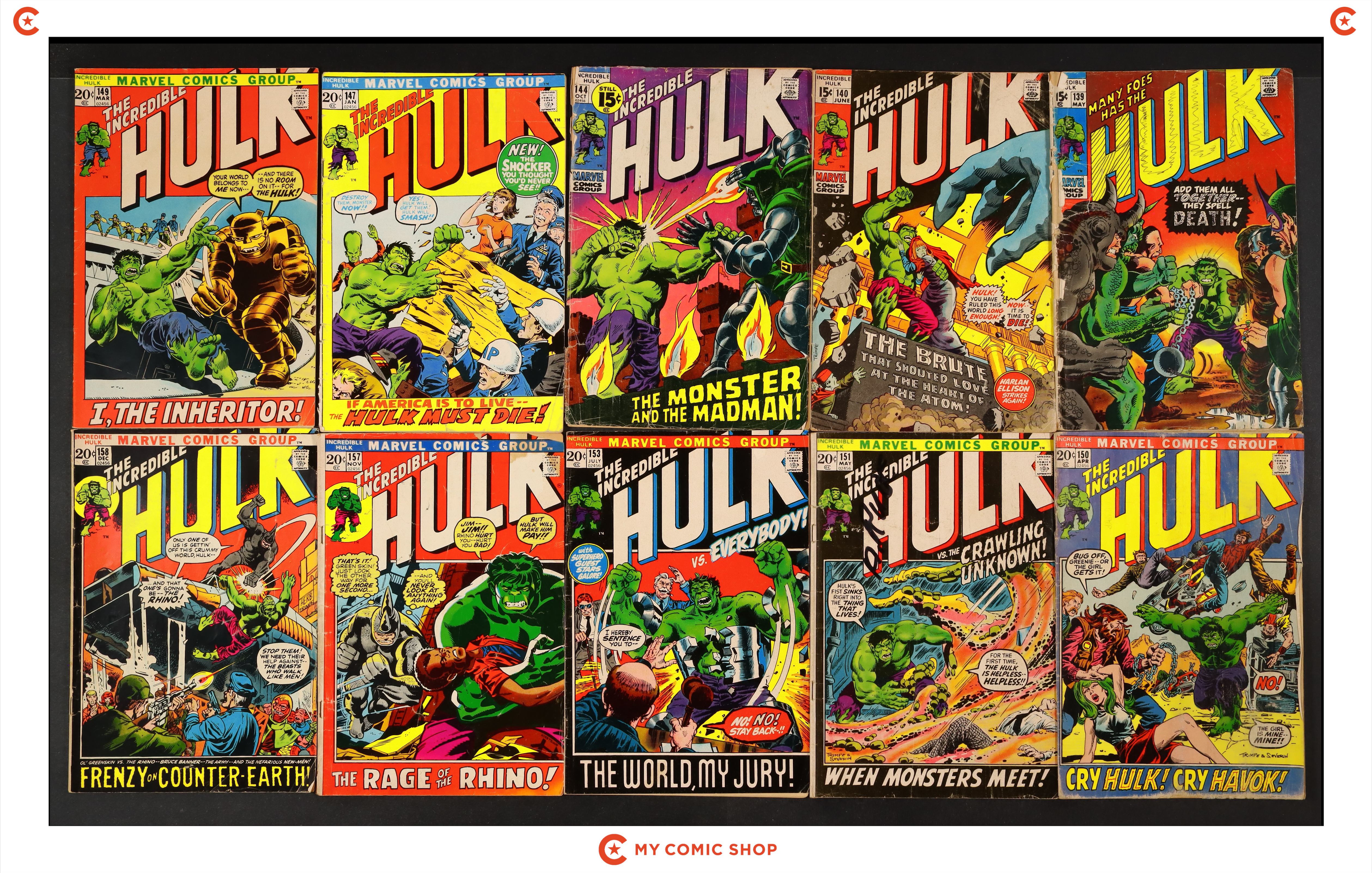 Issues 139, 140, 144, 147, 149-151, 153, 157, and 158 of Incredible Hulk (1962 Marvel 1st Series). Most will grade in the GD range with a couple grading VG and a few grading FR.
