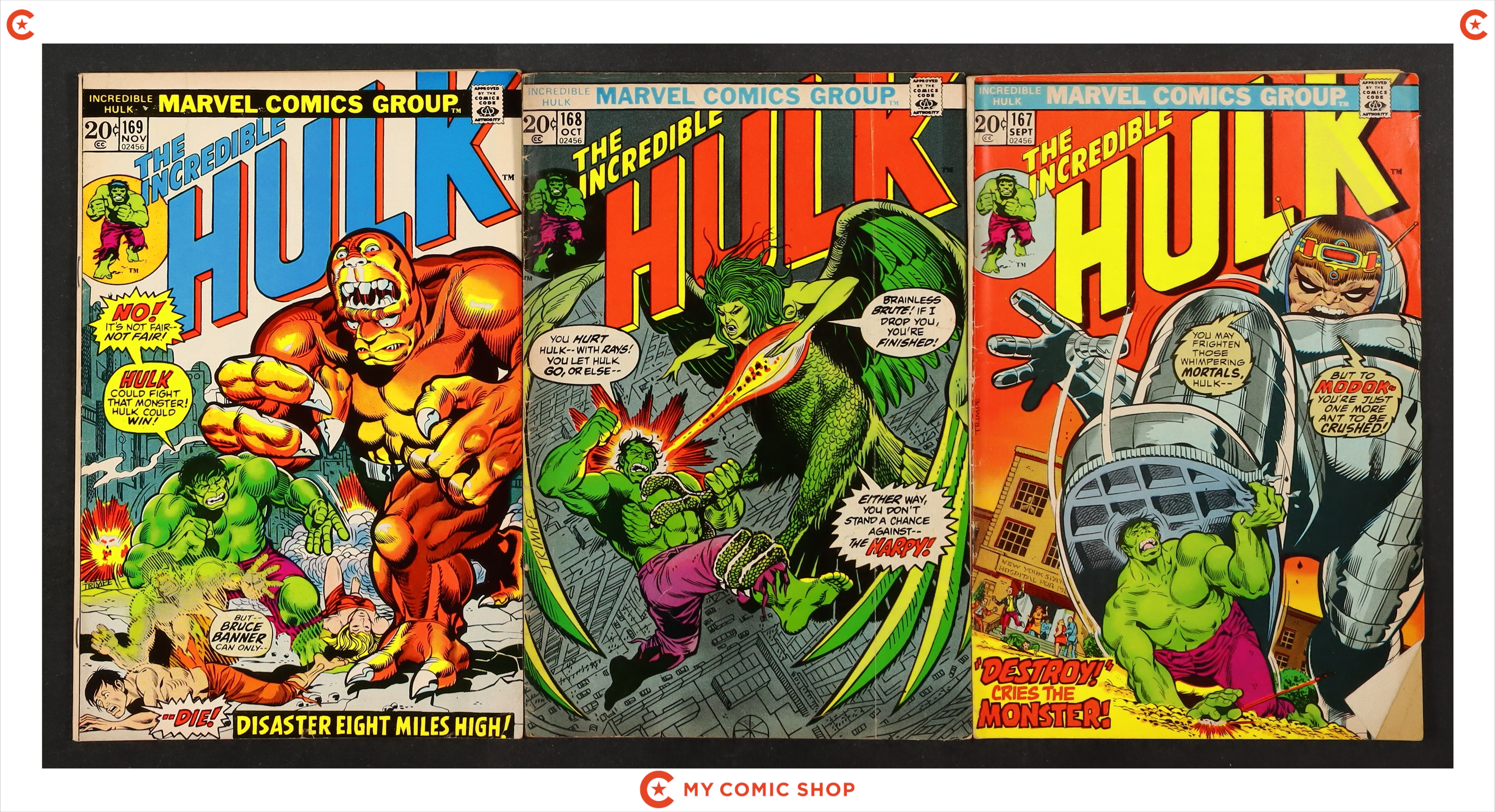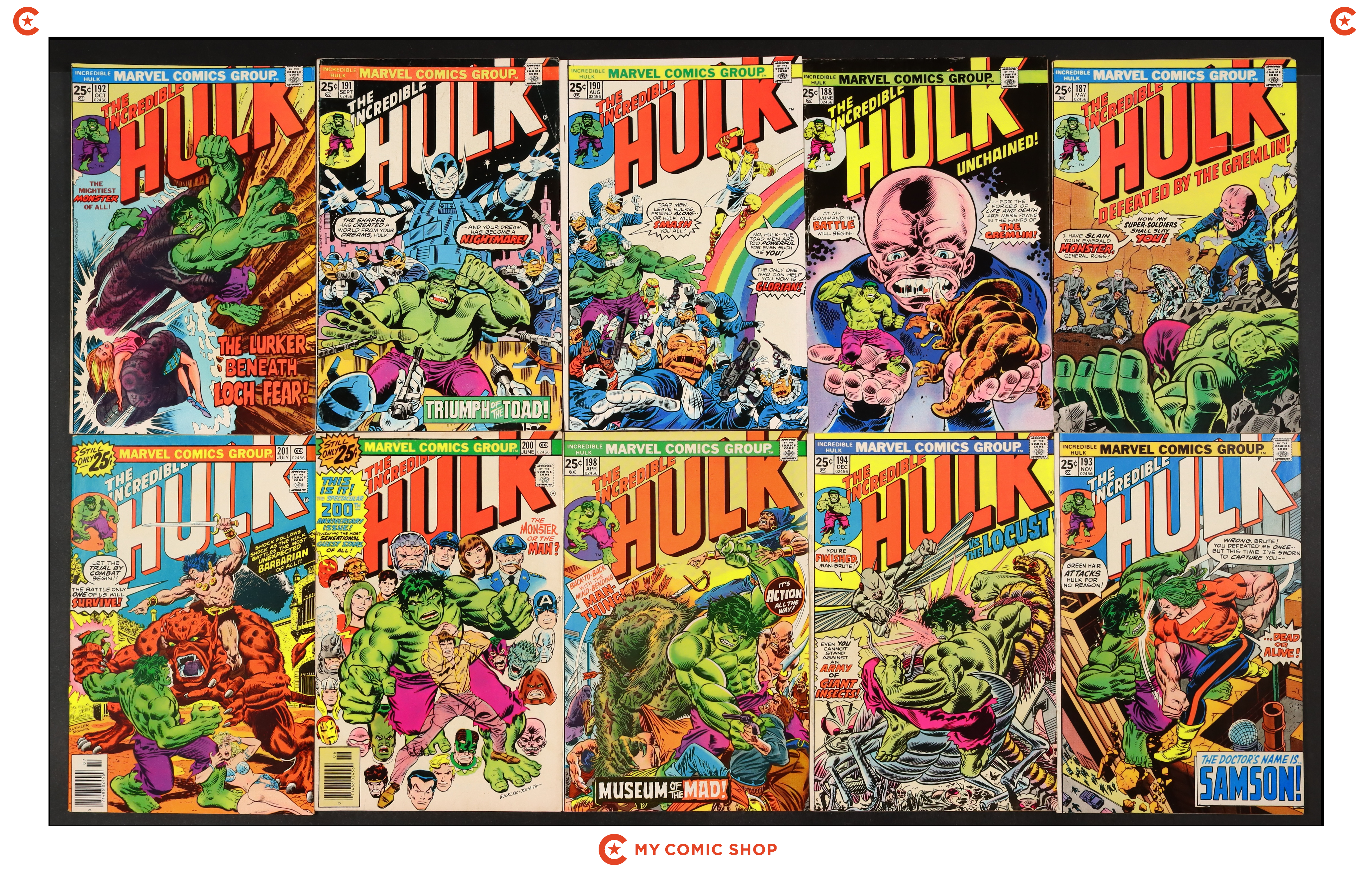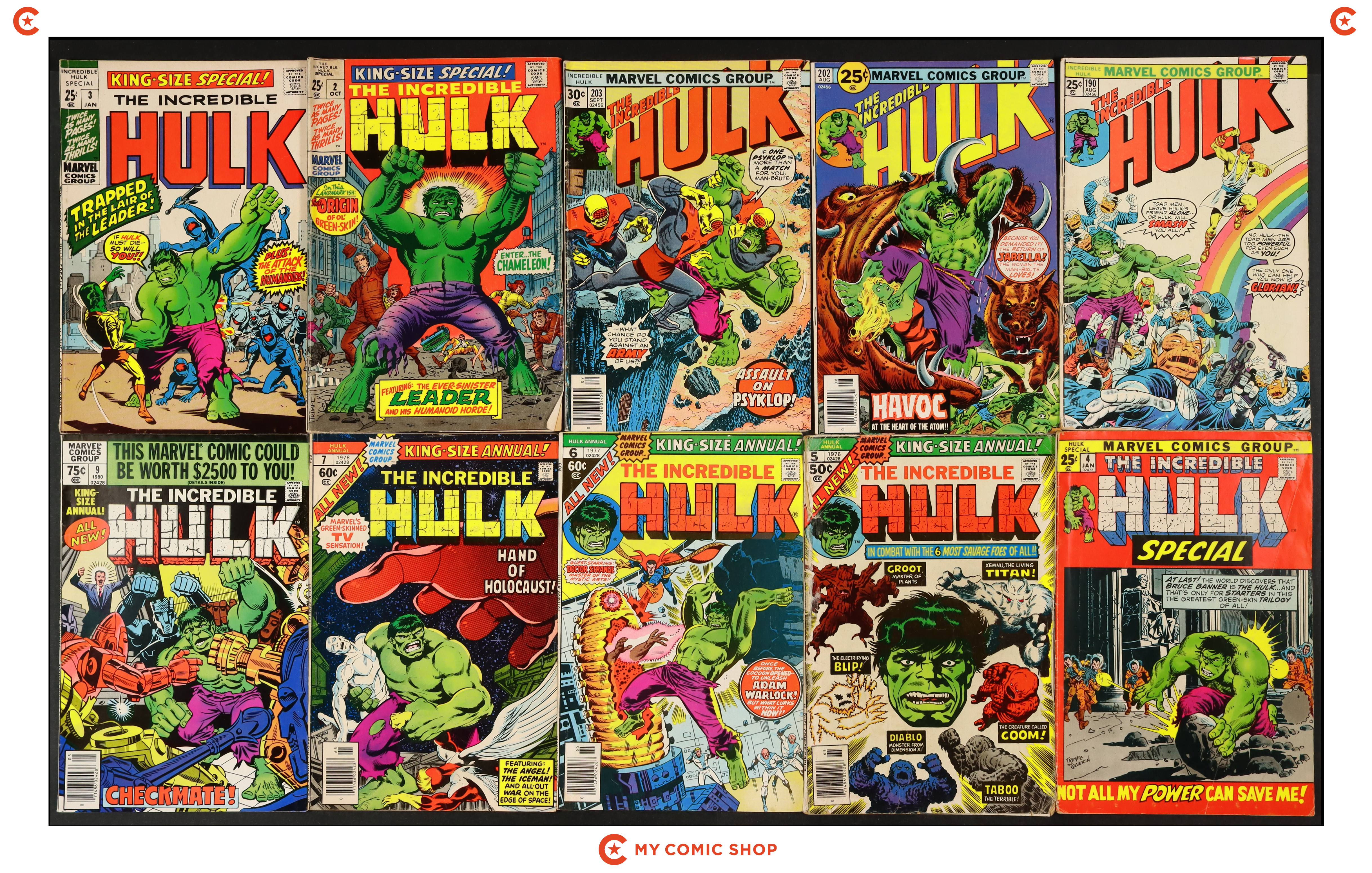 Issues 190, 202, and 203 of Incredible Hulk (1962 Marvel 1st Series); and 2-7and 9N of Incredible Hulk (1962 Marvel 1st Series) Annual. Most will grade in the VG to GD range.