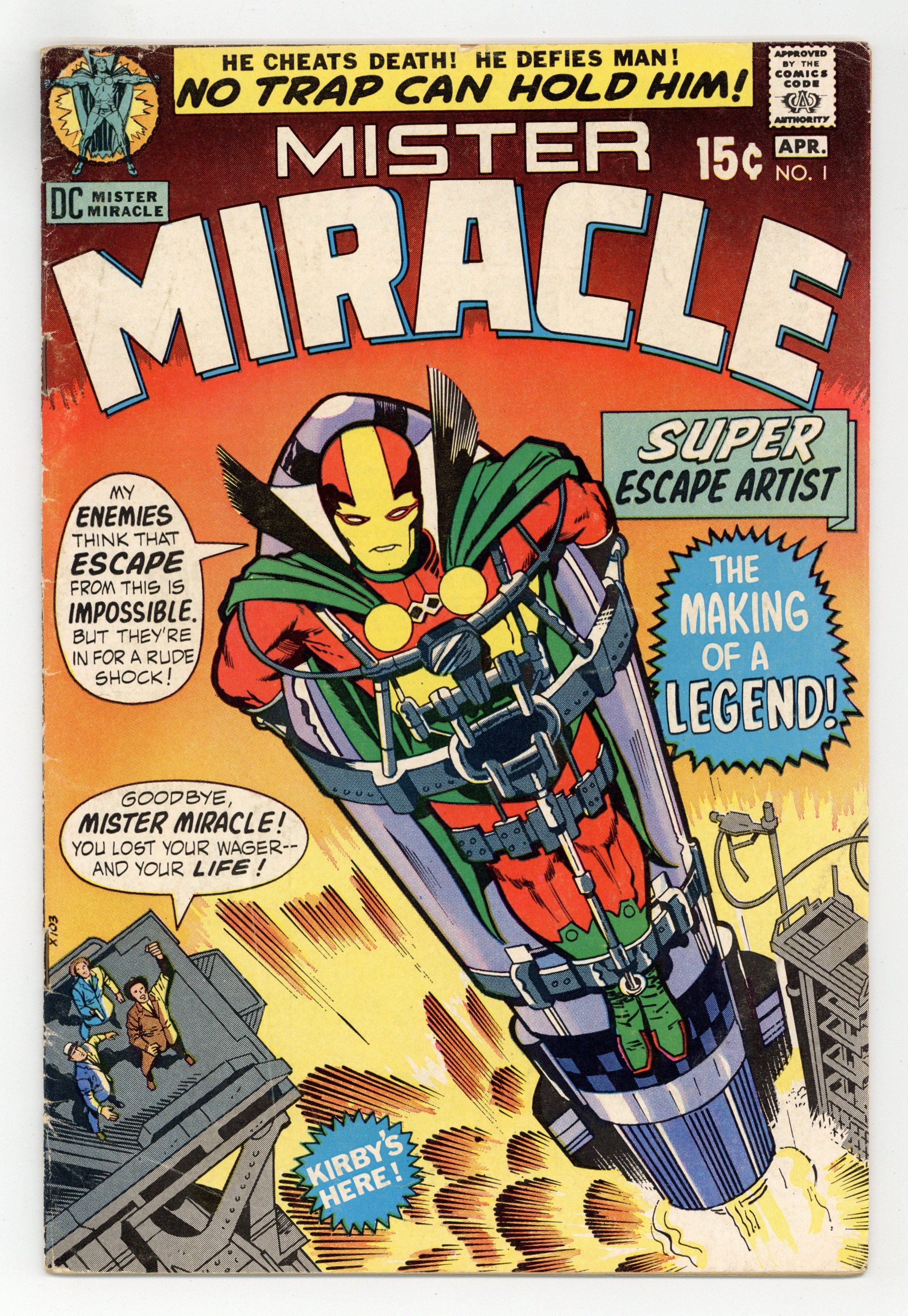 Starts Feb 2 "Murder Missile Trap." Elite soldier Scott Free escapes Apokolips and comes to Earth, where he assumes the role of Mister Miracle. Inspired by the real world exploits of Jim Steranko, who was a magician and escape artist prior to his career in comics, Mister Miracle was created by the great Jack Kirby for his epic Fourth World saga. Script, pencils, and cover by Jack Kirby. Inks by Vince Colletta. Cover price $0.15.