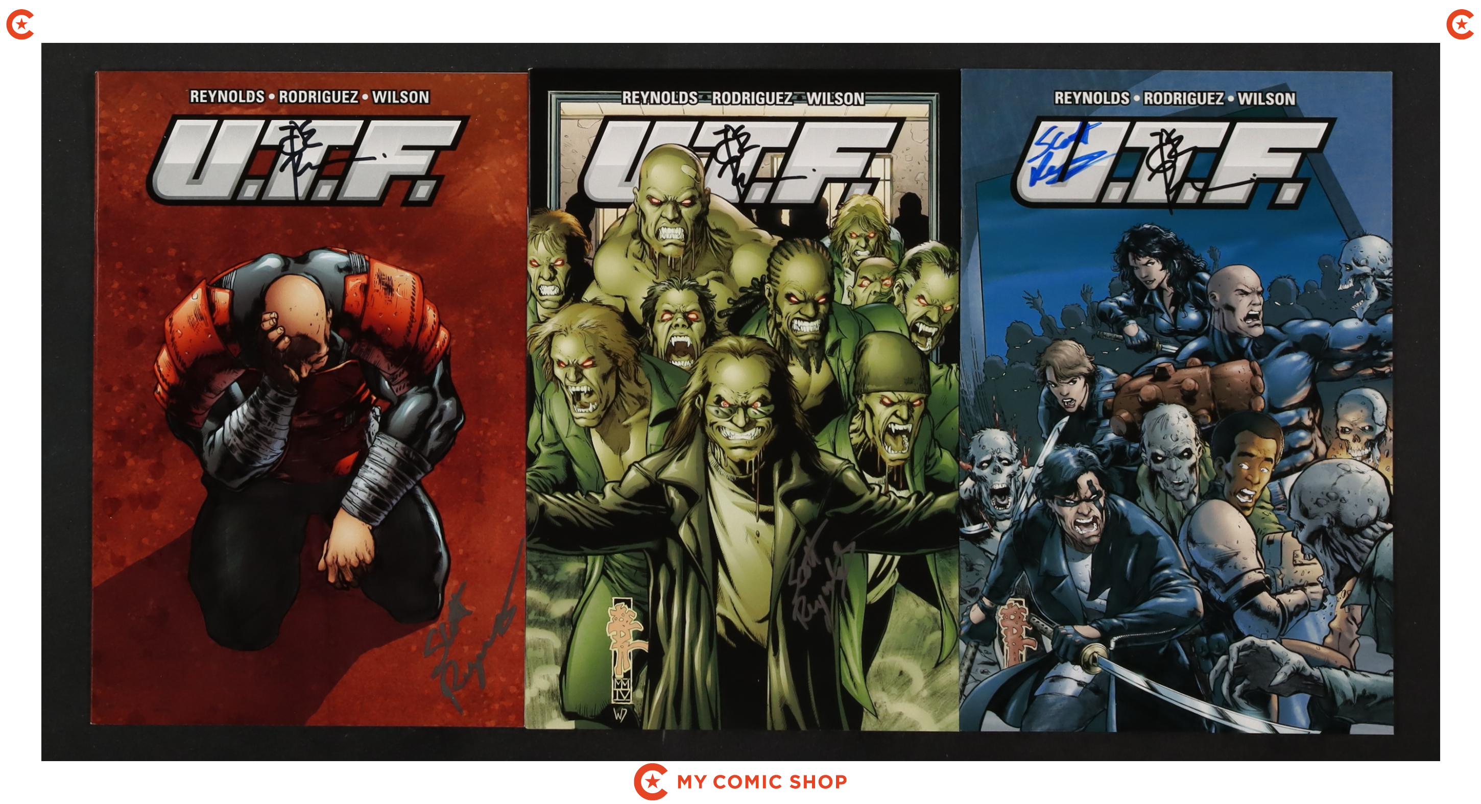Issues 1-3 of UTF (2006) signed by Scott Reynolds and Tone Rodriguez. No autograph certification is included. Most will grade in the VF to NM range.