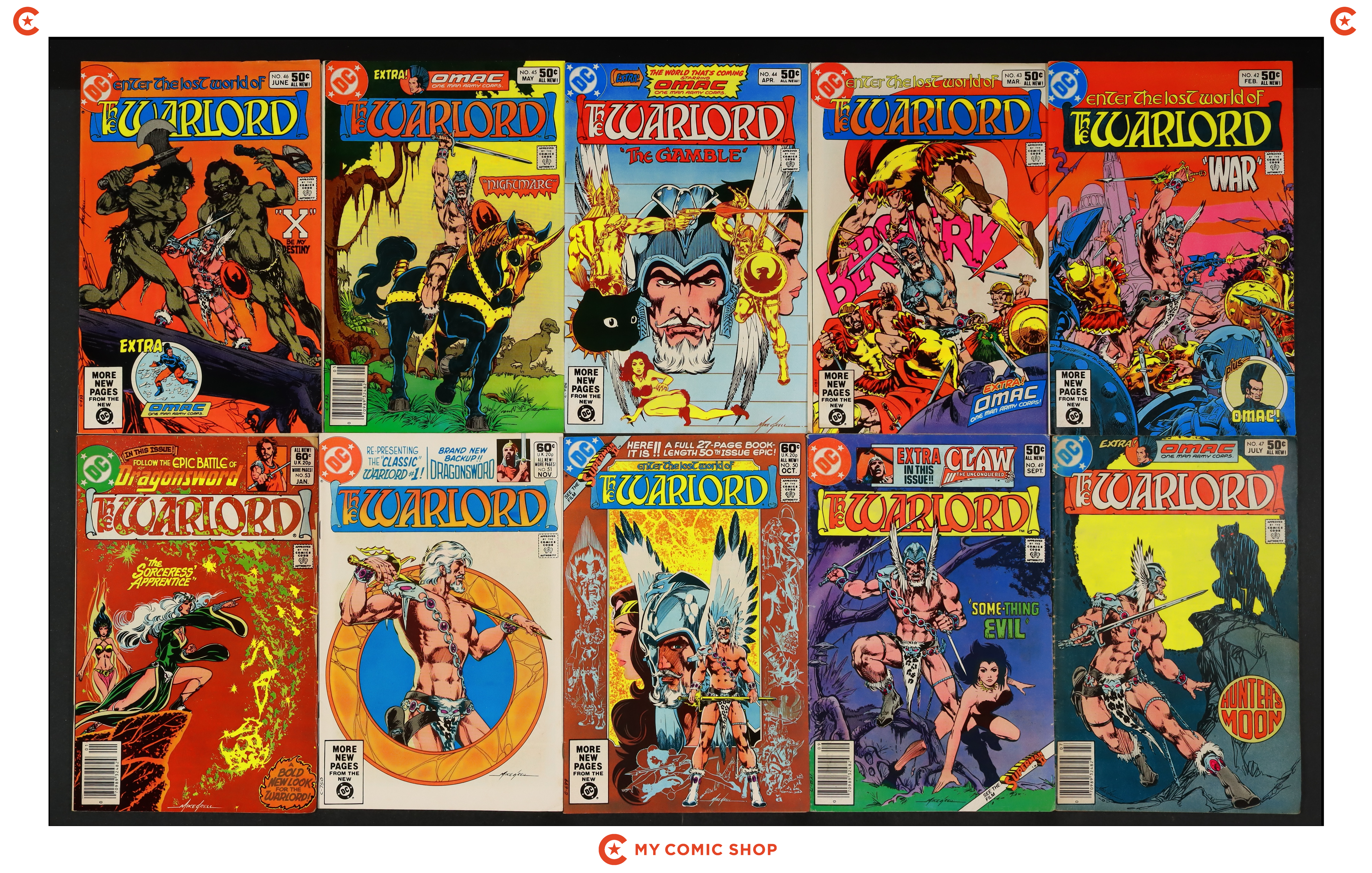 Issues 42, 43, 44D, 45-47, 49-51, 53 of Warlord (1976 1st Series DC). Most will grade in the GD/VG to FN/VF range.