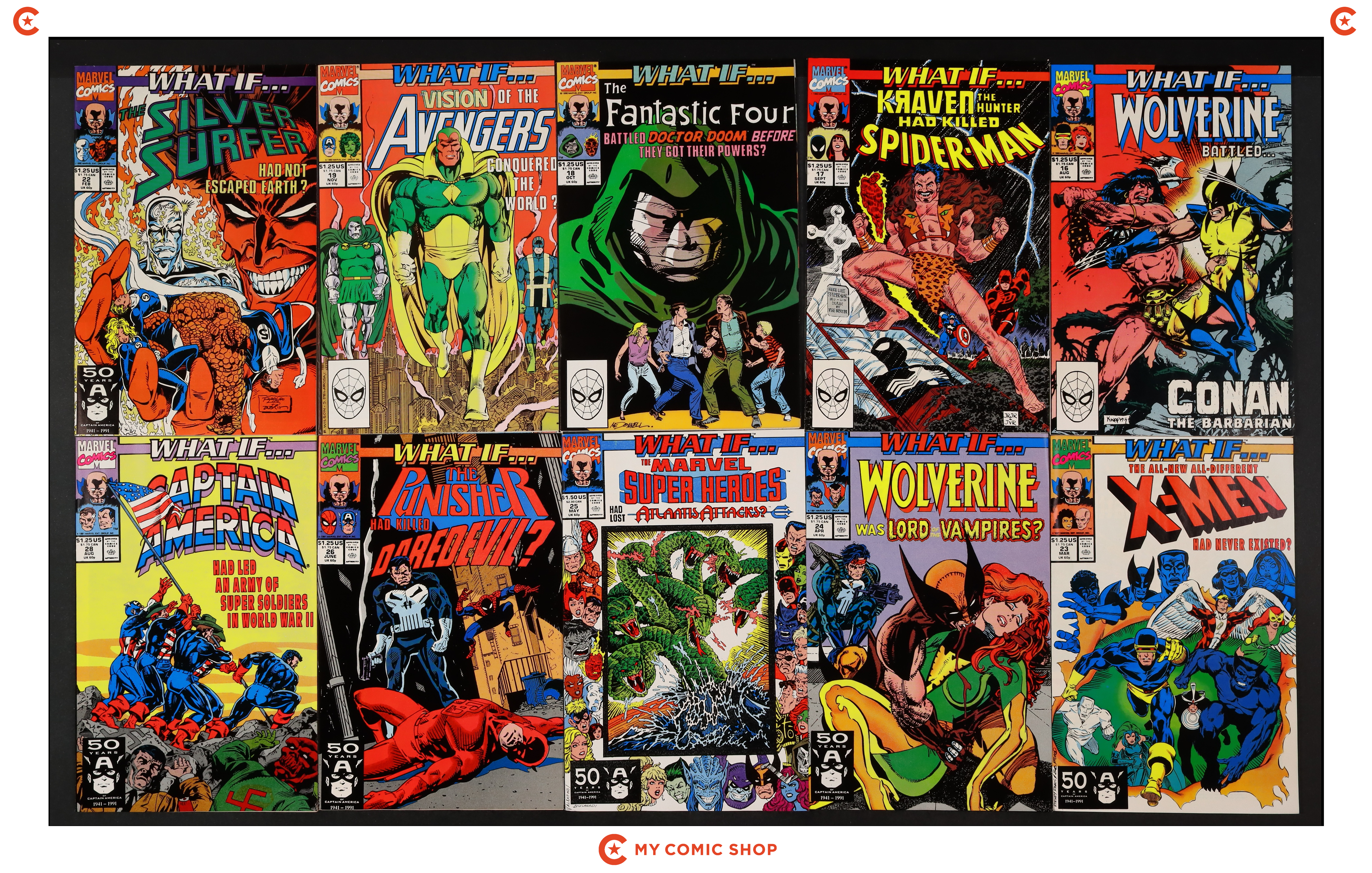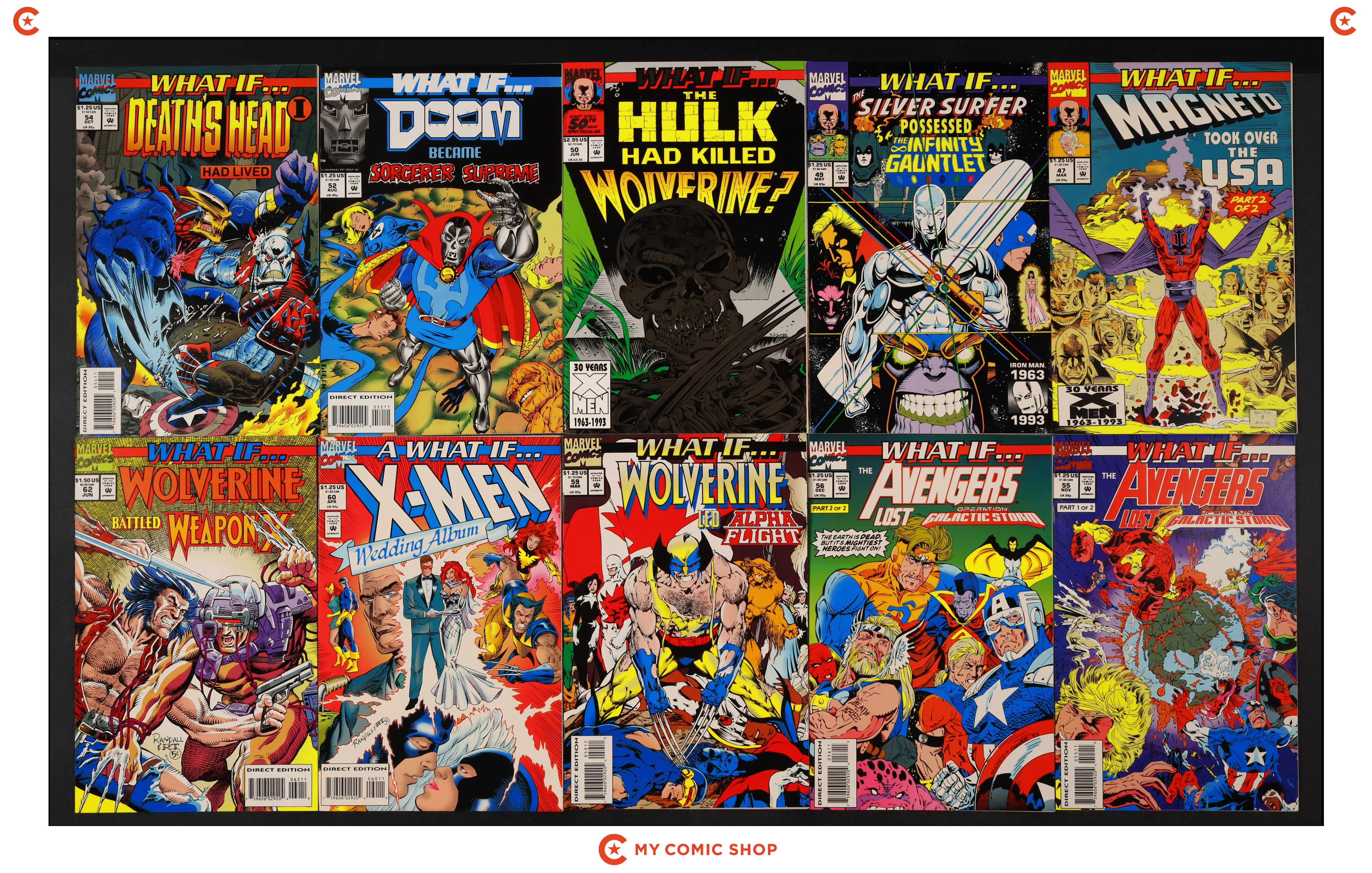 Issues 47, 49, 50, 52, 54, 55, 56, 59, 60, 62 of What If (1989 2nd Series). Most will grade in the FN to VF range.