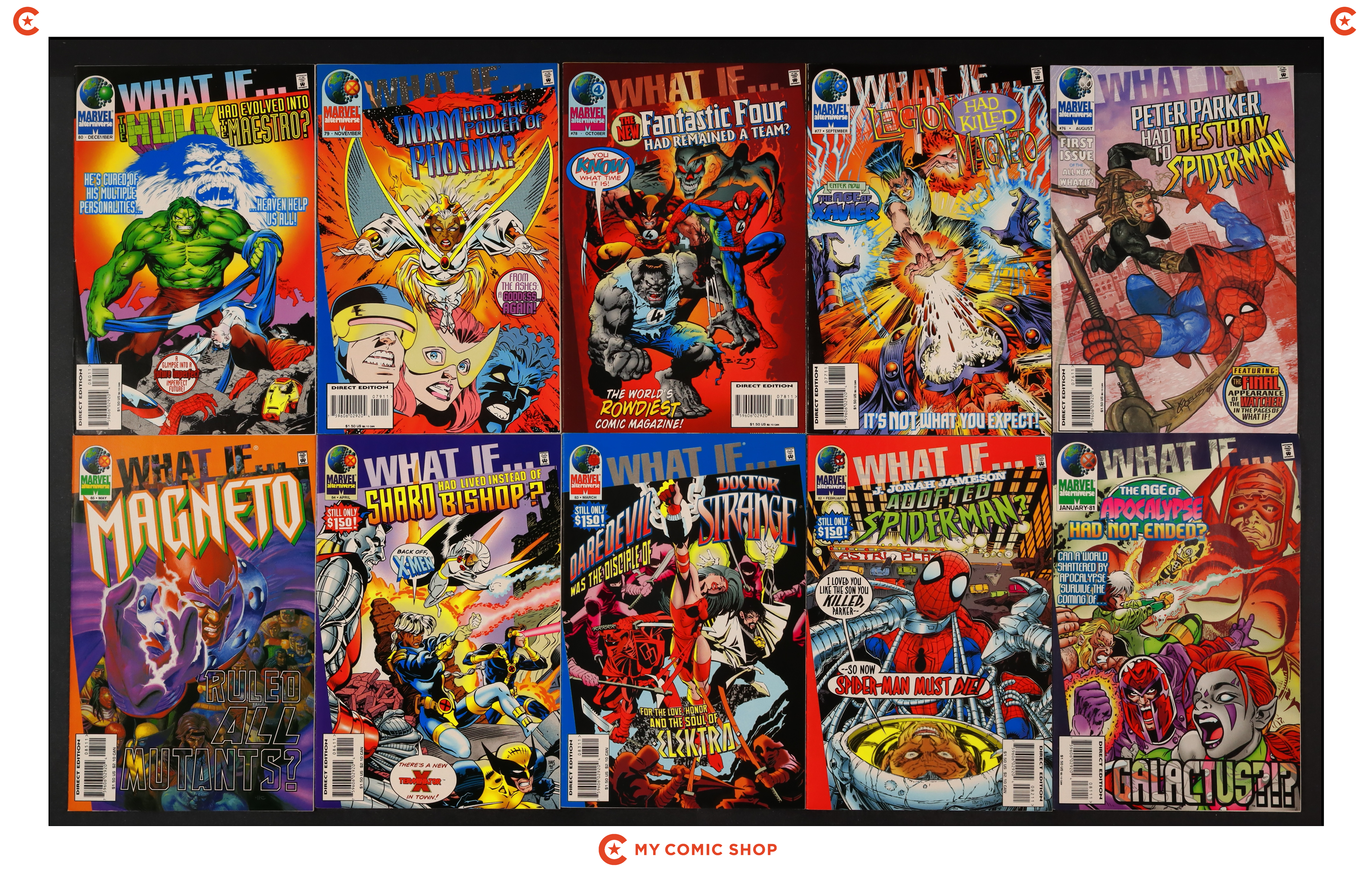 Issues 76, 77, 78, 79, 80, 81, 82, 83, 84, 85 of What If (1989 2nd Series). Most will grade in the FN to VF range.