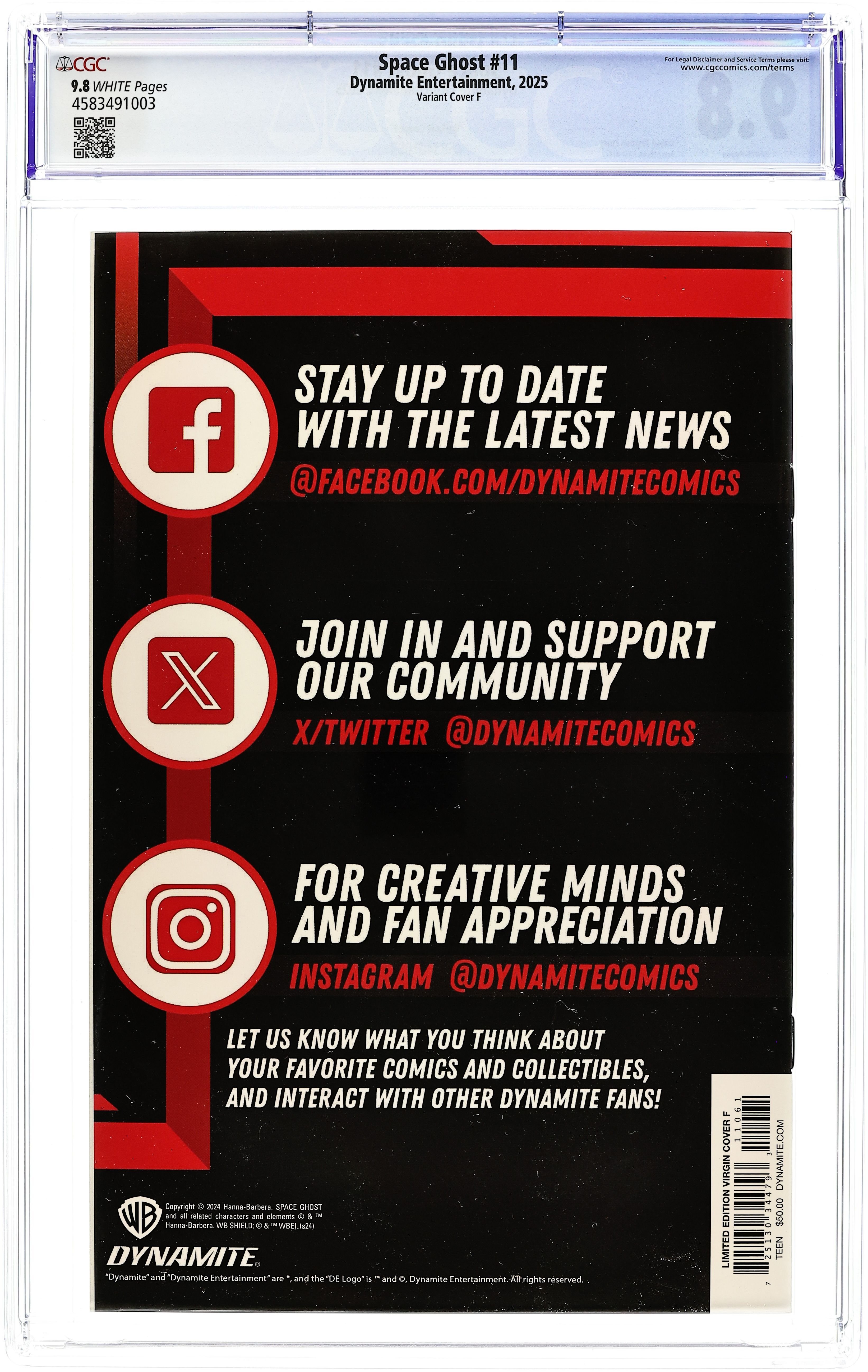 Published 2025 by Dynamite Entertainment.Space Ghost (2024 Dynamite) 11F CGC 9.8