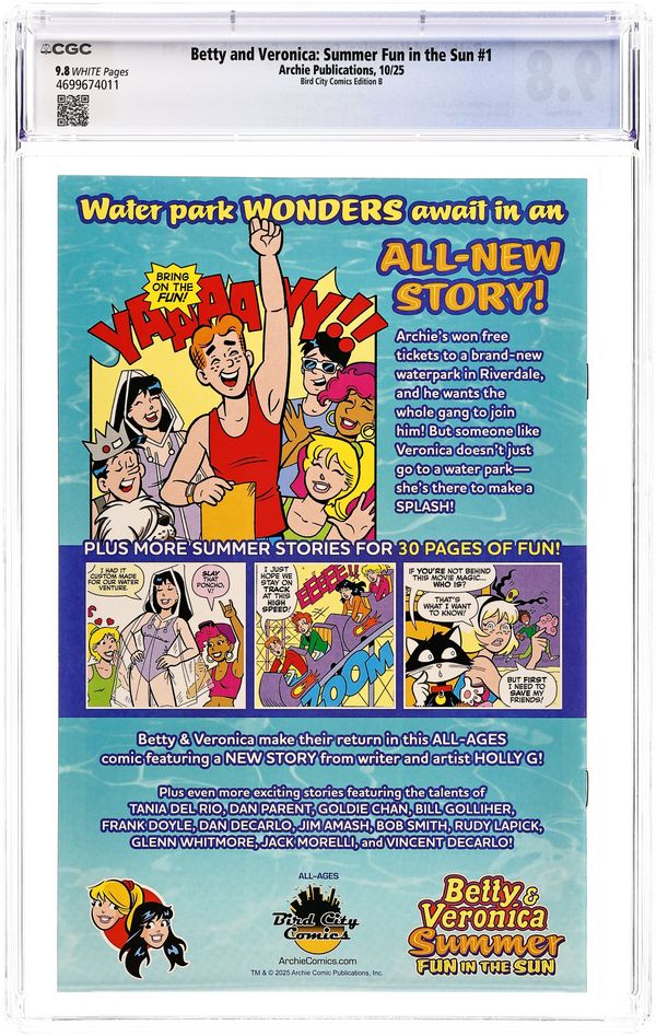 Published Oct 2025 by Archie Publications.Betty and Veronica Summer Fun in the Sun (2025 Archie) 1BIRDCITY.B CGC 9.8