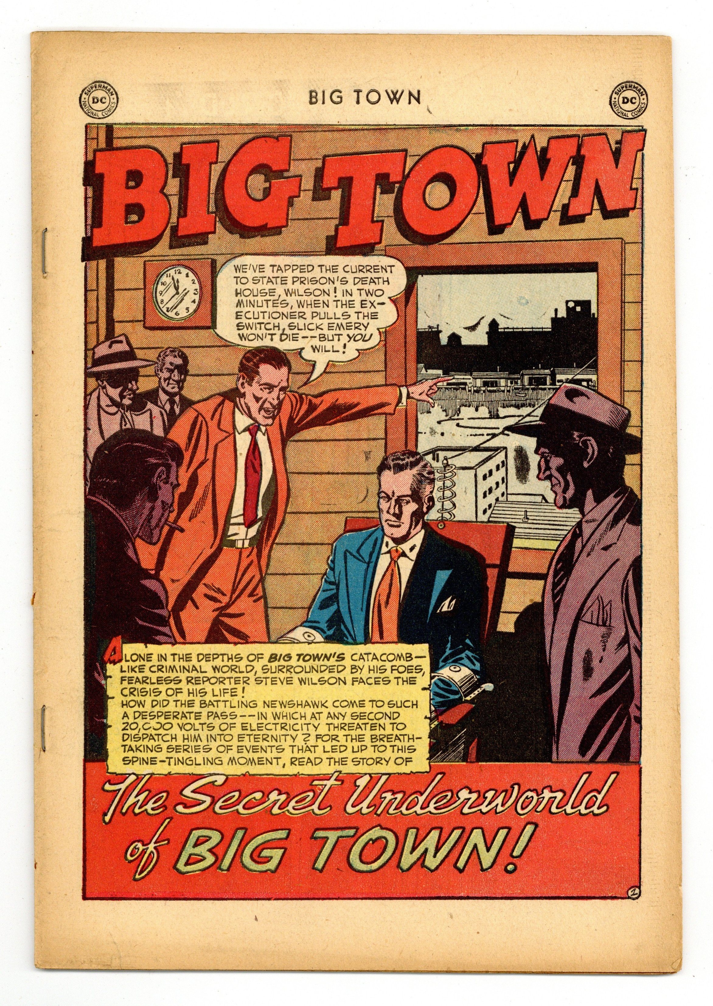 Starts Later today Based on the TV and radio show of the same name, Big Town lasted 50 issues. This installment includes the following: "The Last Headline!" (Lorelei and Steve Wilson compete to write the best story involving dangerous jobs); "The Secret Underworld of Big Town!; and "The City That Never Sleeps!" Scripts by John Broome, Miriam Hecht, and Bill Finger, pencils by John Lehti, inks by John Giunta, Bernard Sachs, and Bob Lander. Cover by Alex Toth. Cover price $0.10.