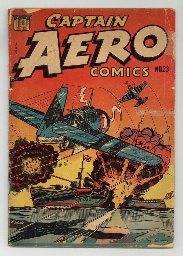 Cover by L. B. Cole. Stories and art by Carmine Infantino, Nina Albright, Rudy Palais, A. Culverwell, Maurice del Bourgo, Al Hollingsworth, and Paul Parker. A patriotic WWII aviator hero whose motto is "Keep 'Em Flyin'!" Miss Victory must stop Axis scientist Fujo and his last-ditch weapon against the Allies, the Globe of Death. Fact-based stories about the war blimps of the US Navy Coastal Patrol (with art by Al Hollingsworth) and wartime air-traffic control (with art by Carmine Infantino). Plus non-fiction stories about the Budd RB-1 Conestoga "flying boxcar," B-25 Bomber, Curtis Commando plane and Douglass SBD Dauntless. Cover by legendary artist L. B. Cole. Captain Aero - Traitor!; Miss Victory; Curtis Commando; Flying Arsenal; The Mighty Mite: Movie Menace Is Malarkey; Pacific Pandemonium; Blimp Blitz; Interceptor Command; Douglass SBD Dauntless; Captain Aeros Sky Scouts: The Old Man of the Air; The Red Cross. 52 pages, Full Color. Cover price $0.10.