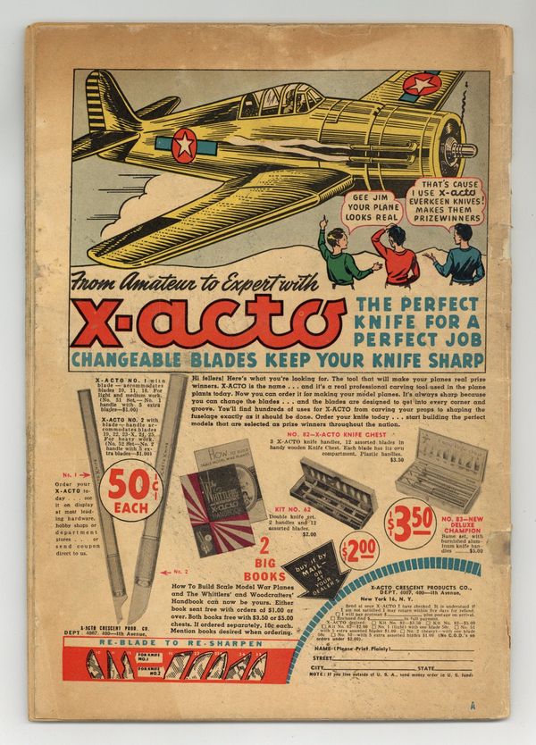 Cover art by Jack Kirby. Unlucky Thirteen, script and art by Jack Kirby. Join the Legion of Forgotten Men, script and art by Jack Kirby; the boys think they are signing autographs but accidentally join the Foreign Legion. Captain Tootsie Tootsie Rolls ad, pencils by C. C. Beck, inks by Pete Costanza. Sunken World, script and art by Jack Kirby. Law and Order text story starring Jimmy Dale, script by Tex Wade. 52 Pages, Full Color. Cover price $0.10.