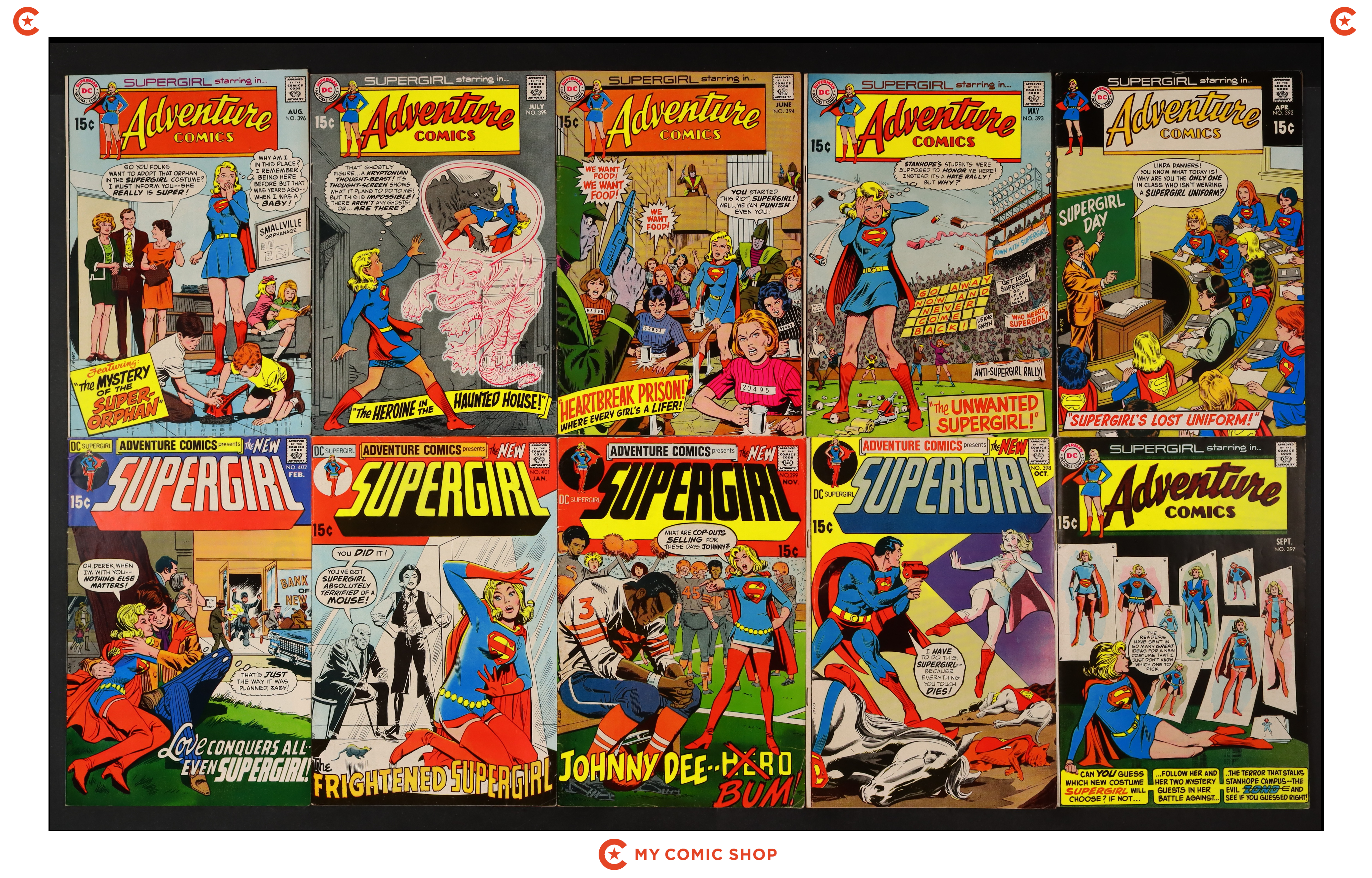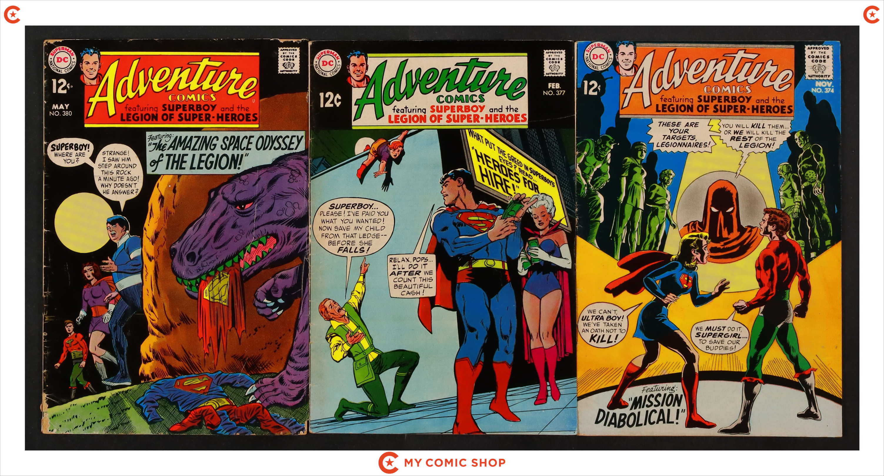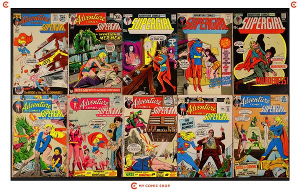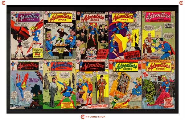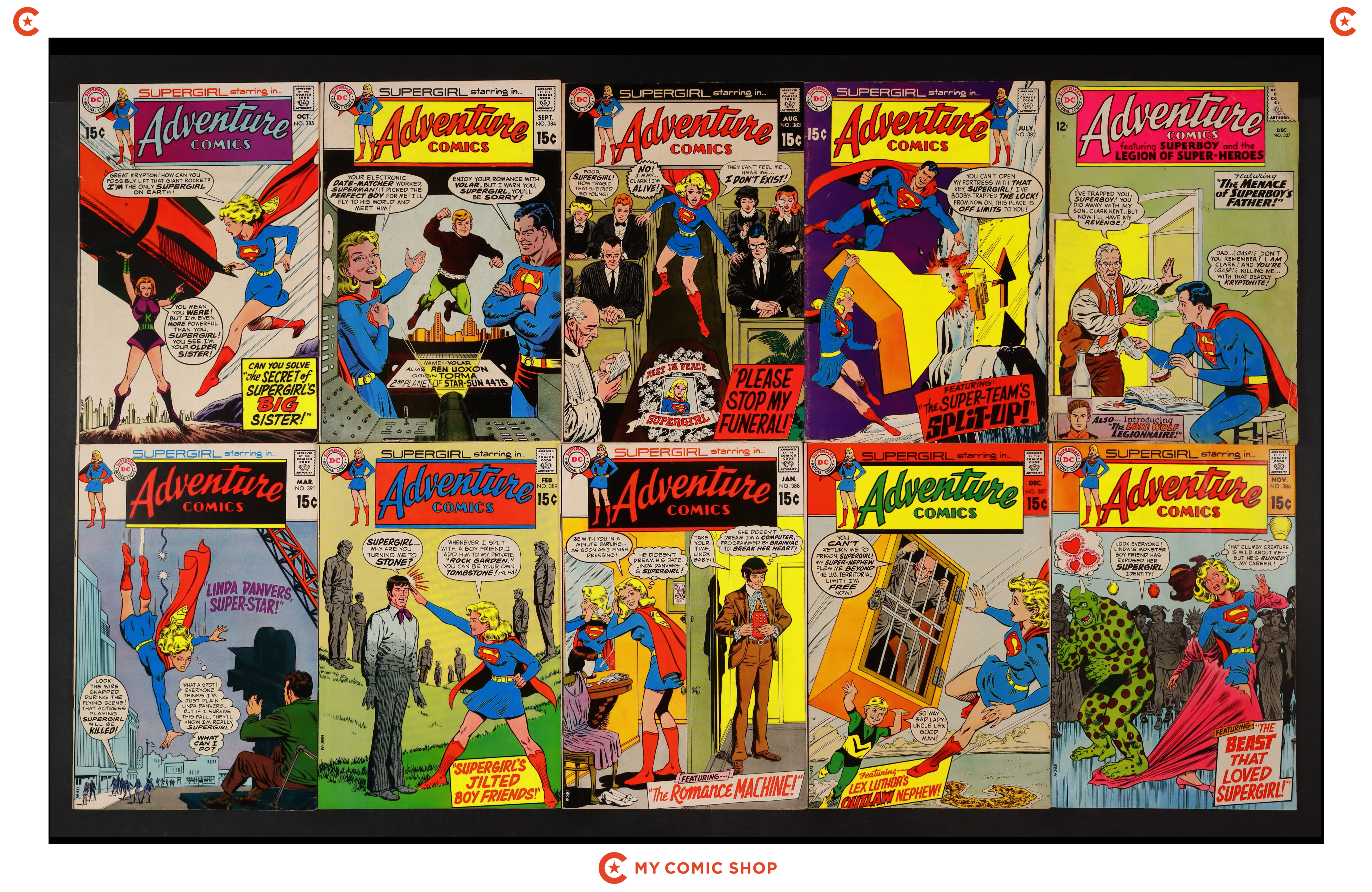 Issues 392-399, 401, and 402 of Adventure Comics (1938 1st Series). Most will grade in the FN to VG range.