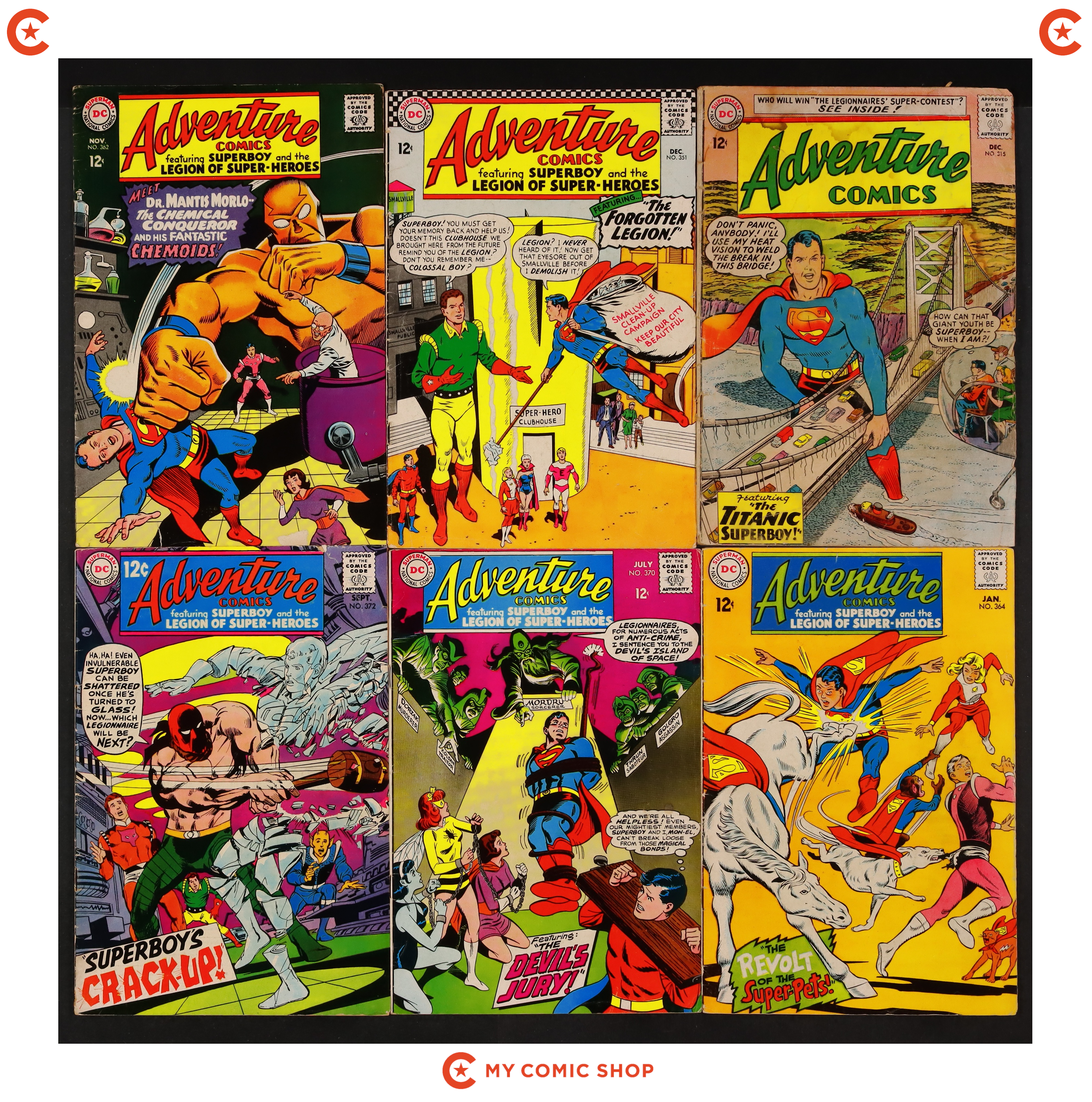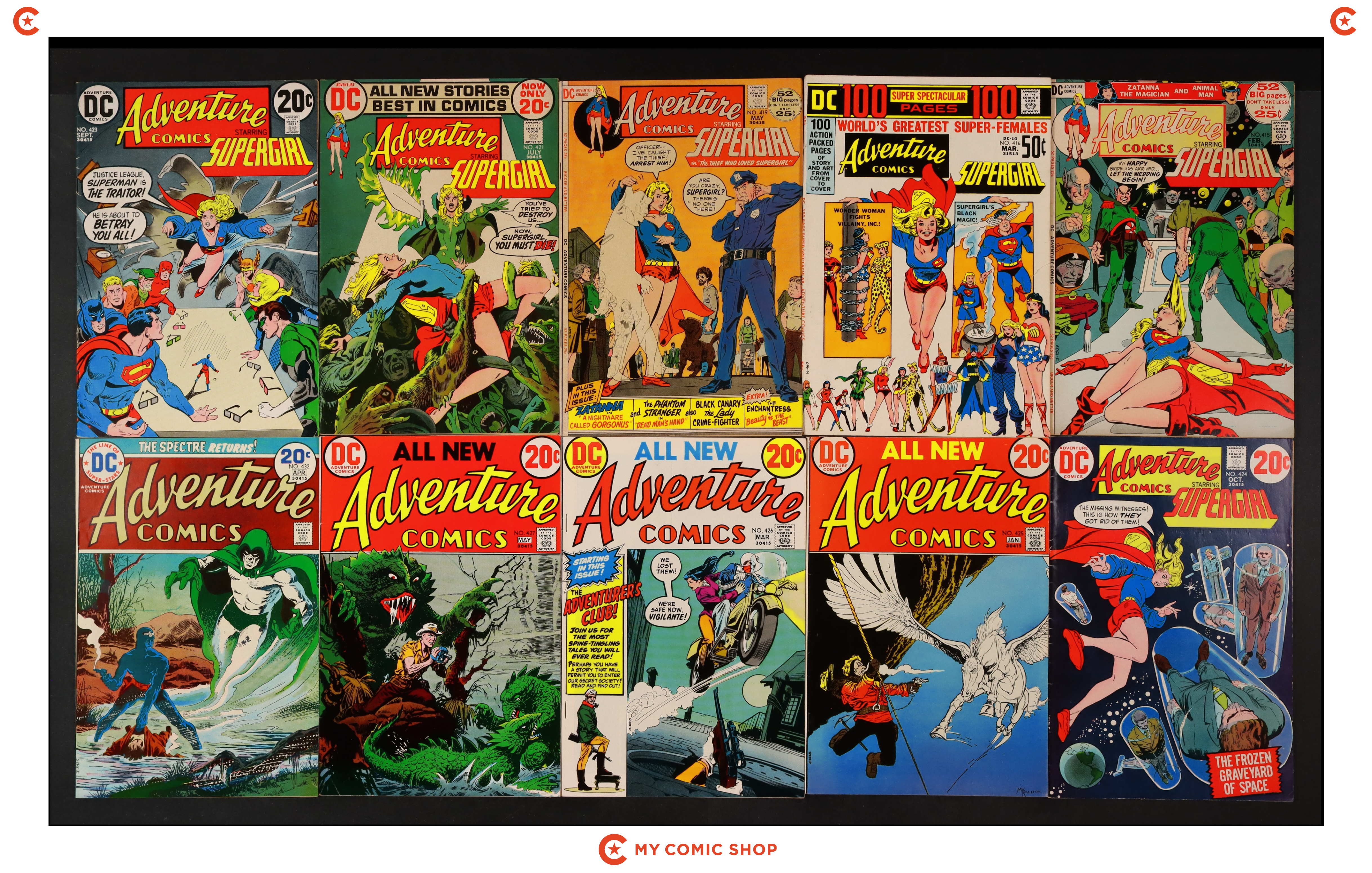 Issues 410-417 of Adventure Comics (1938 1st Series). Most will grade in the VG to GD range.