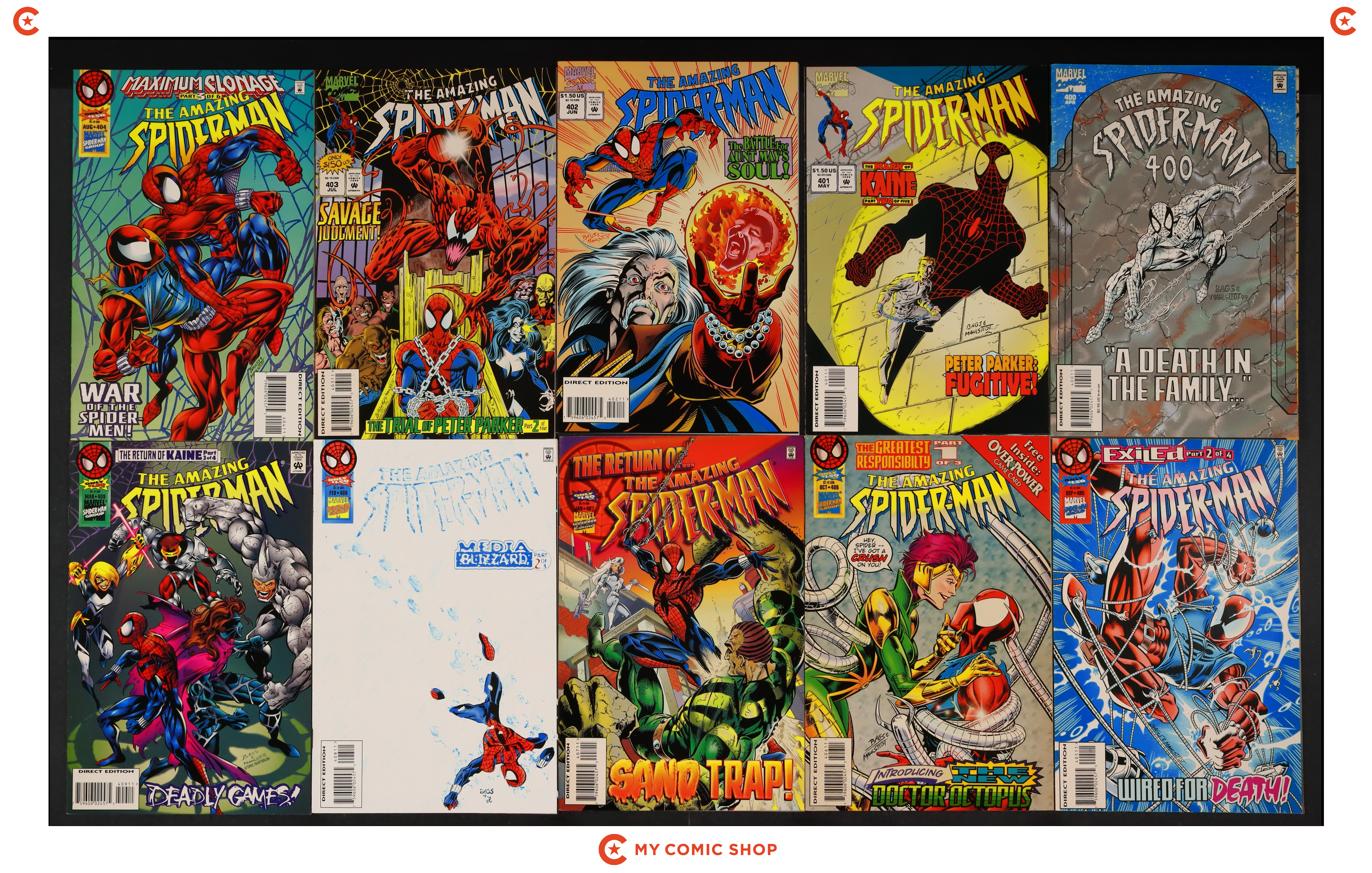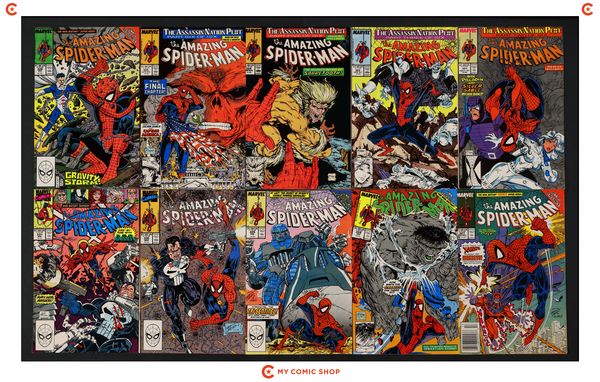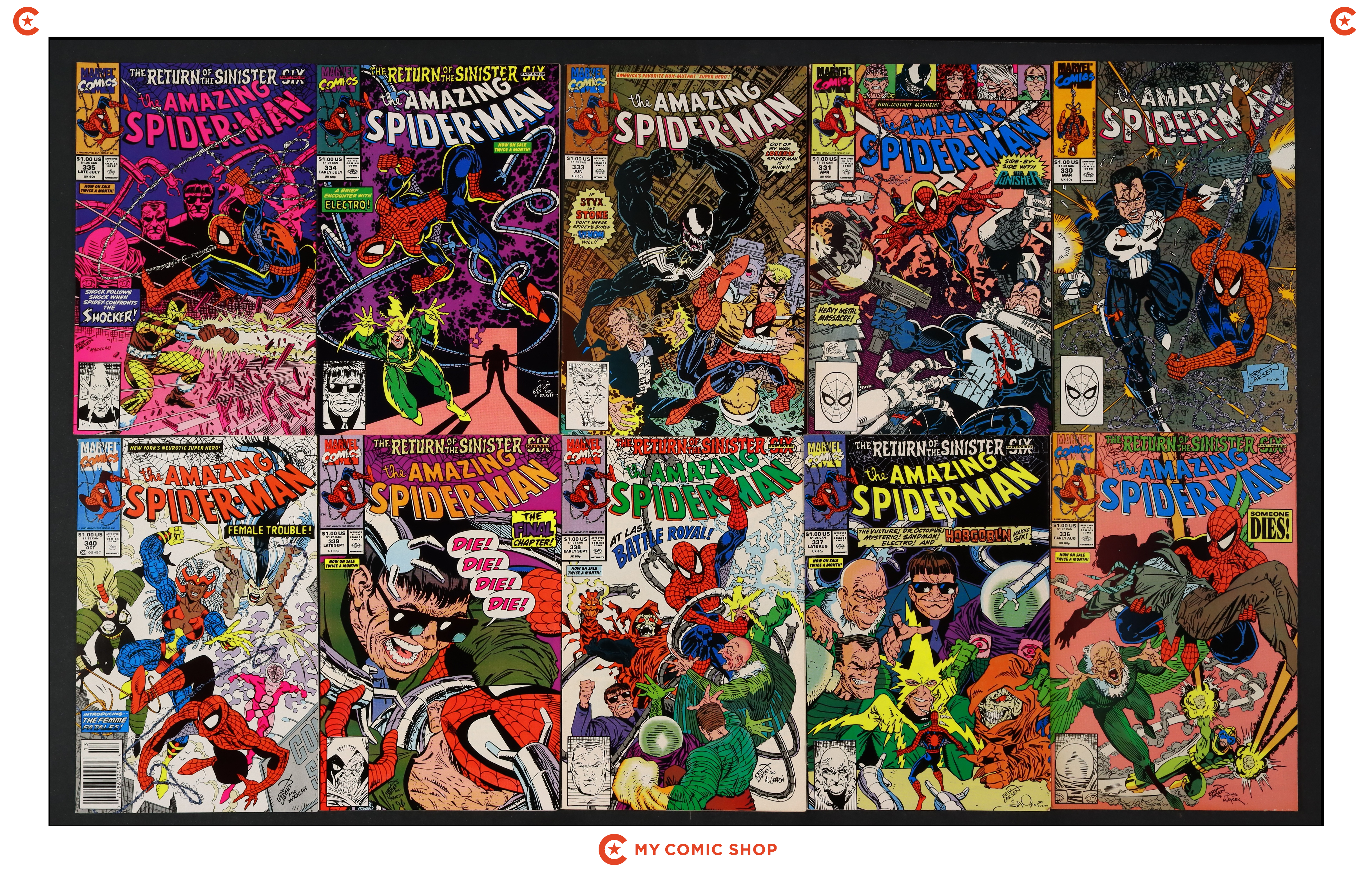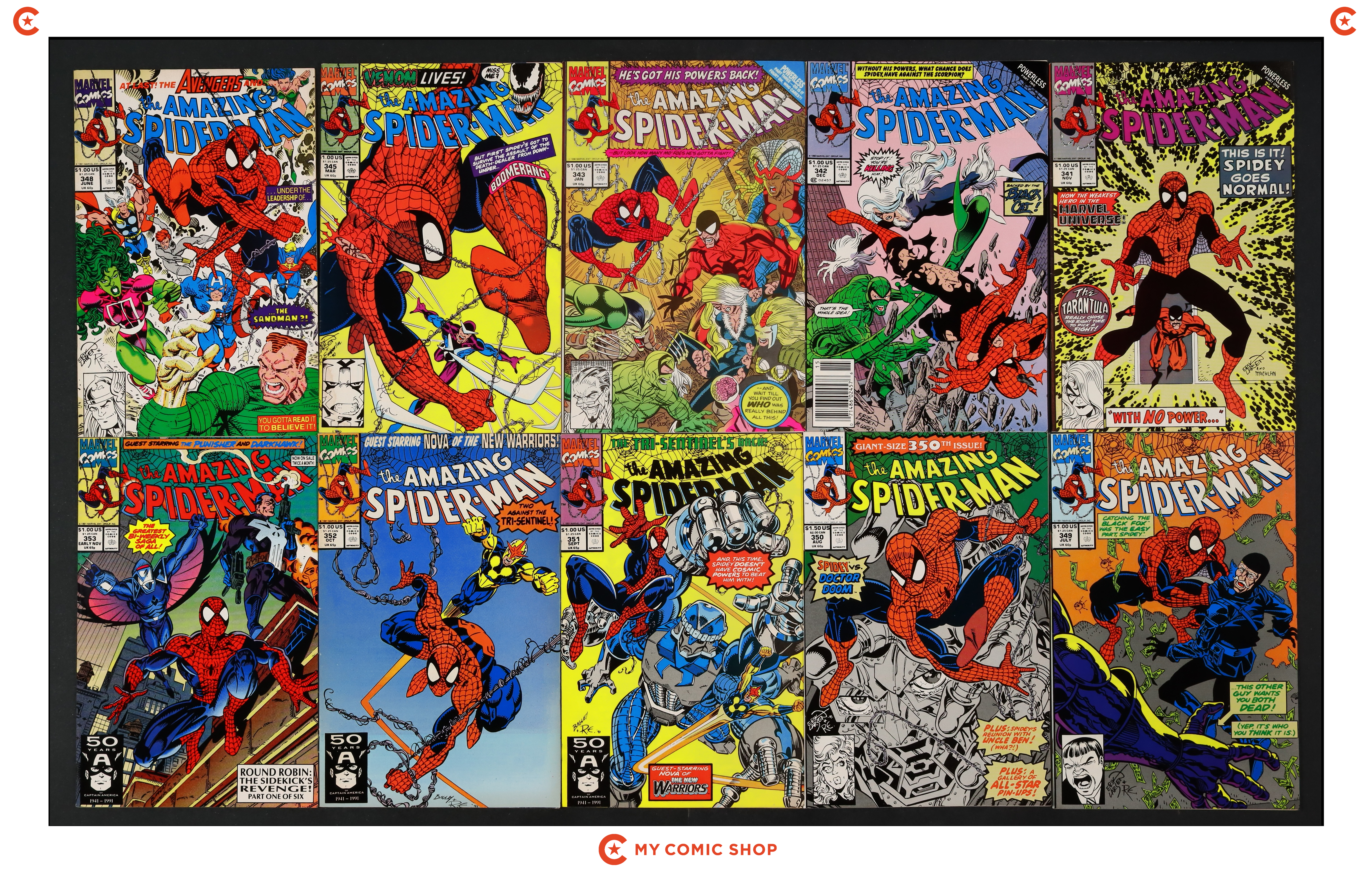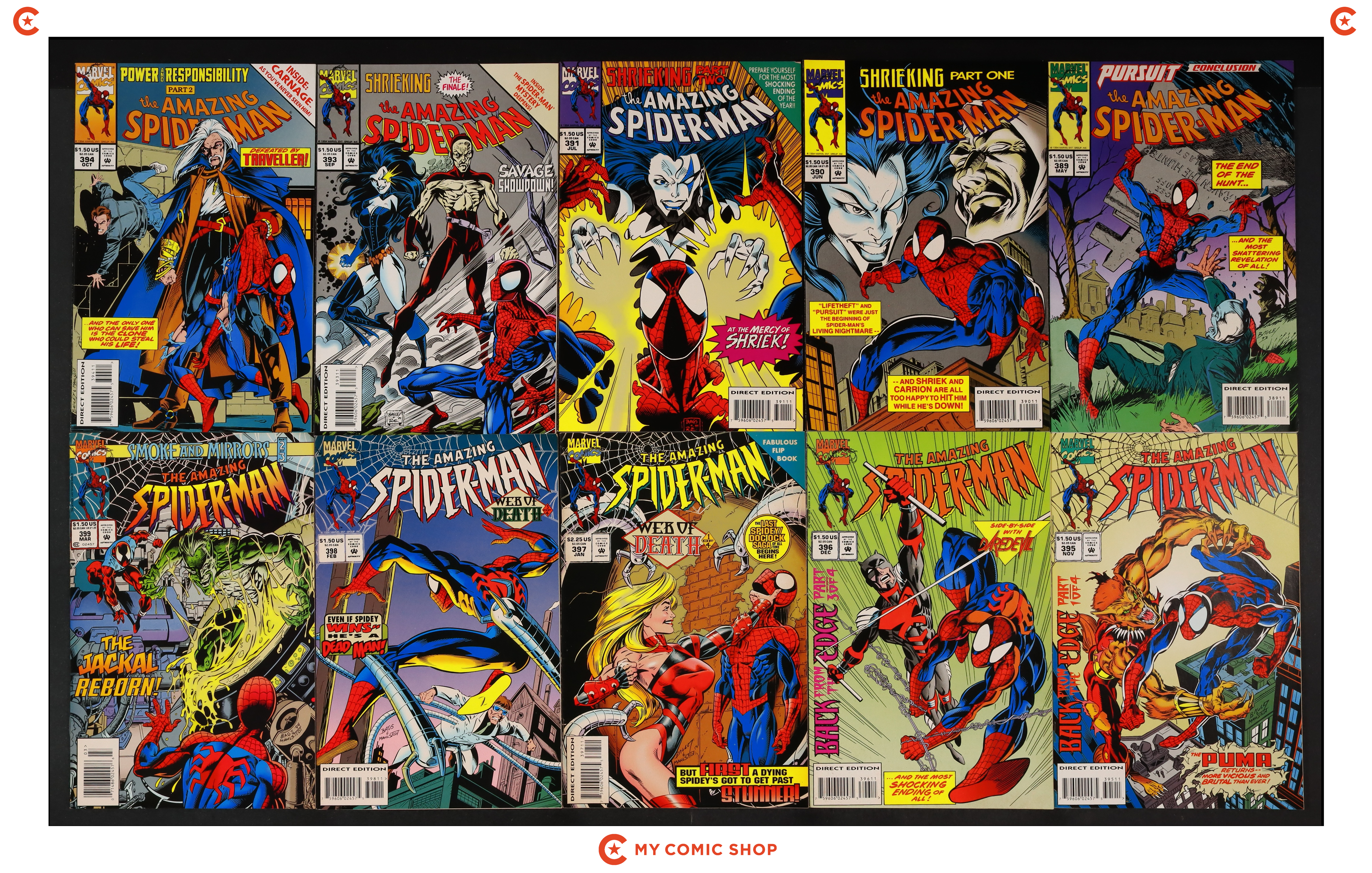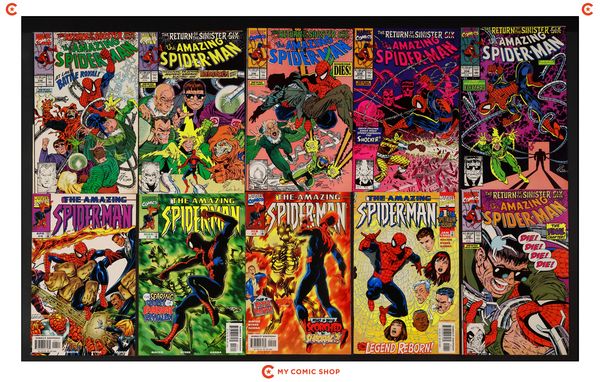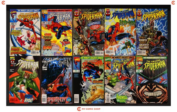 Issues 334-339 of Amazing Spider-Man (1963 1st Series) and issues 1A.D-4 of Amazing Spider-Man (1998 2nd Series). Most will grade in the FN to VF range.