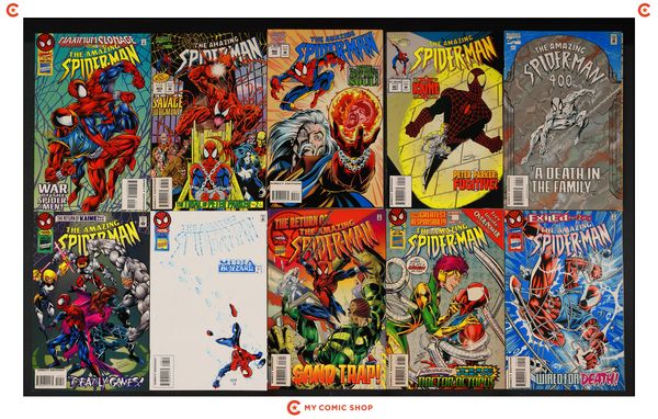 Issues 400C, 401-407, 408A, 409 of Amazing Spider-Man (1963 1st Series). Most will grade in the FN/VF to VF+ range, with 407 grading at VG+.