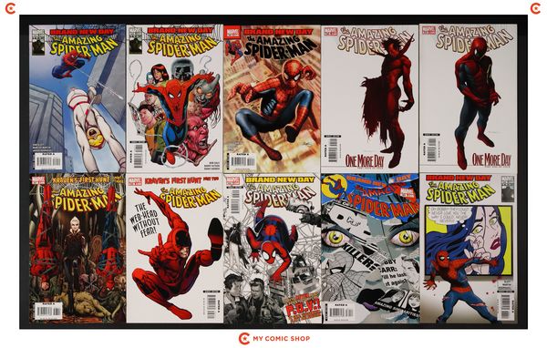 Issues 548, 549A, 450, 451, 452A, 553, 554, 555A, 556, and 557 of Amazing Spider-Man (1998 2nd Series). Most will grade in the VF range with a few grading FN.