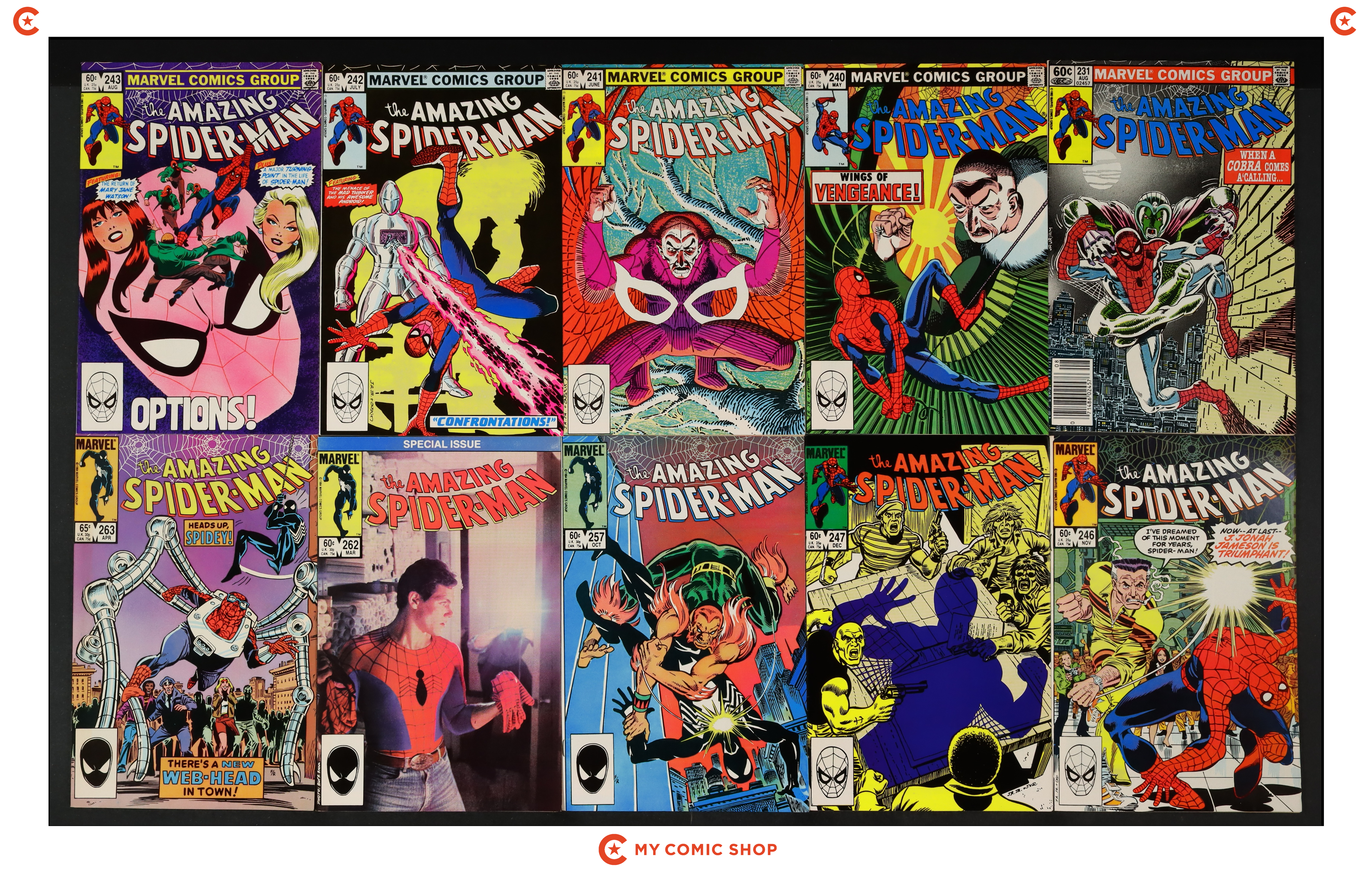 Issues 231N, 240-243, 246, 247, 257, 262D, 263D of Amazing Spider-Man (1963 1st Series). Most will grade in the VF- to VF+ range.