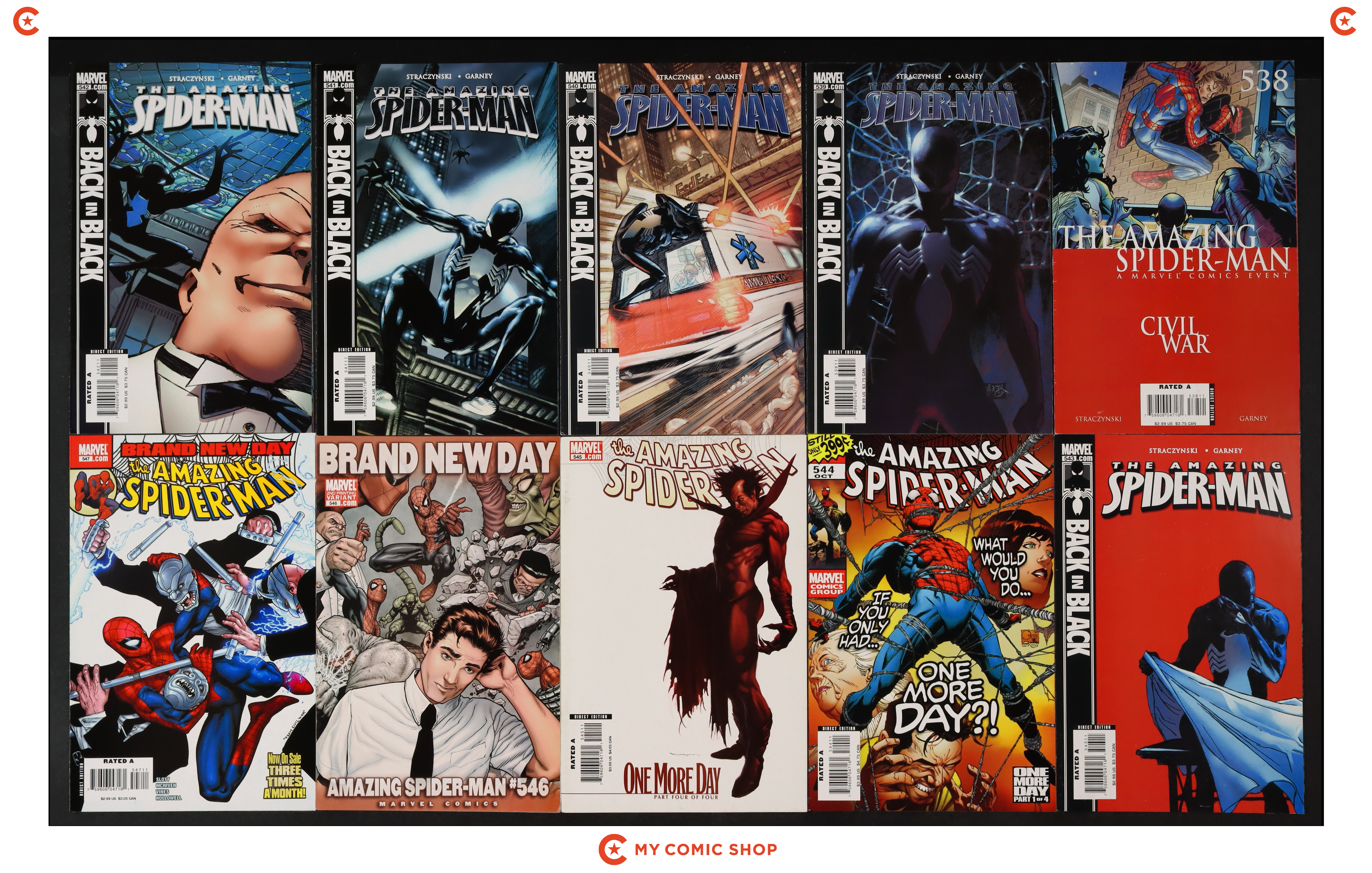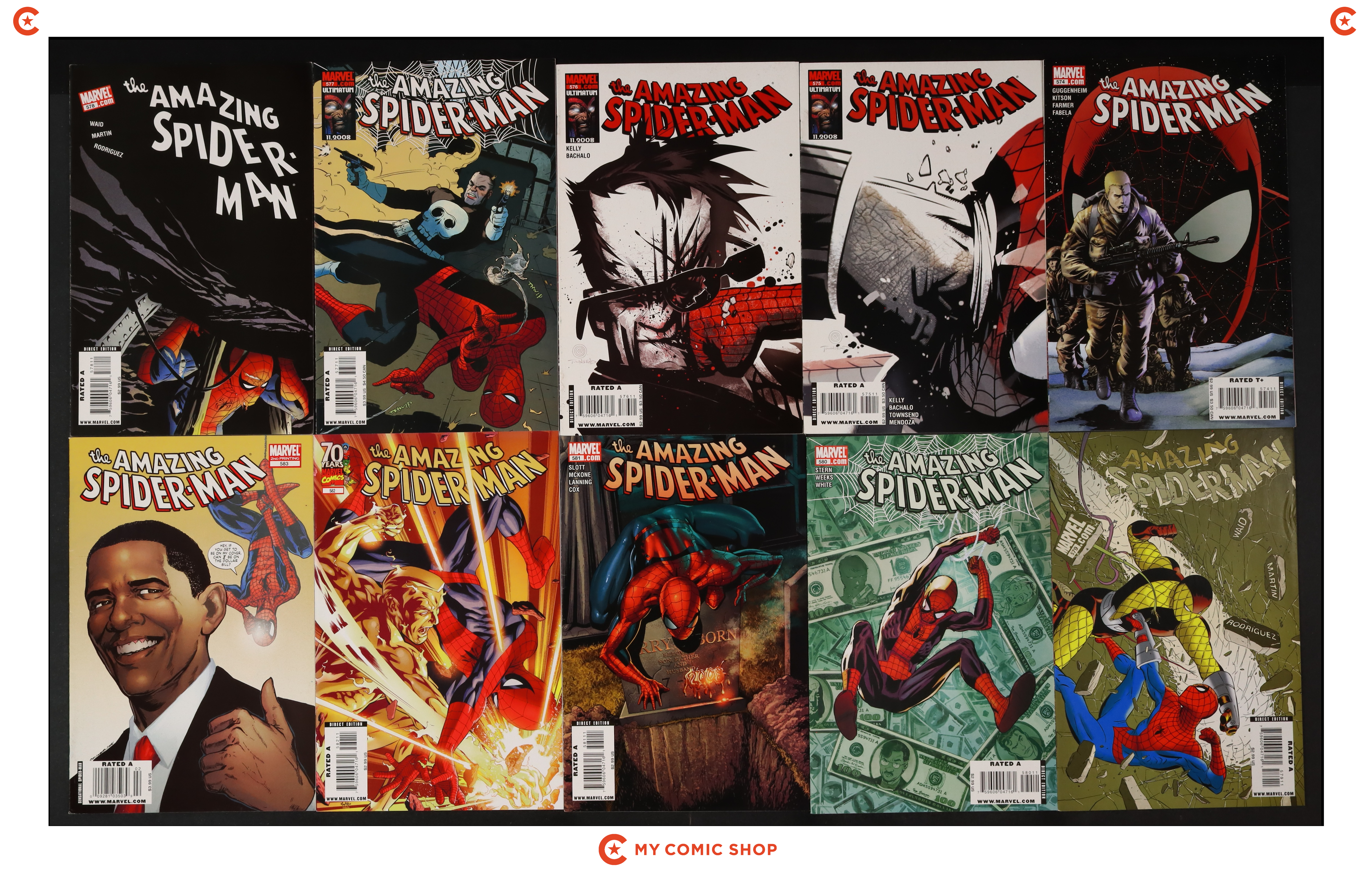 Issues 538A, 539A, 540, 541, 542, 543, 544A, 545B, 546D, 547 of Amazing Spider-Man (1998 2nd Series). Most will grade in the FN to VF range.