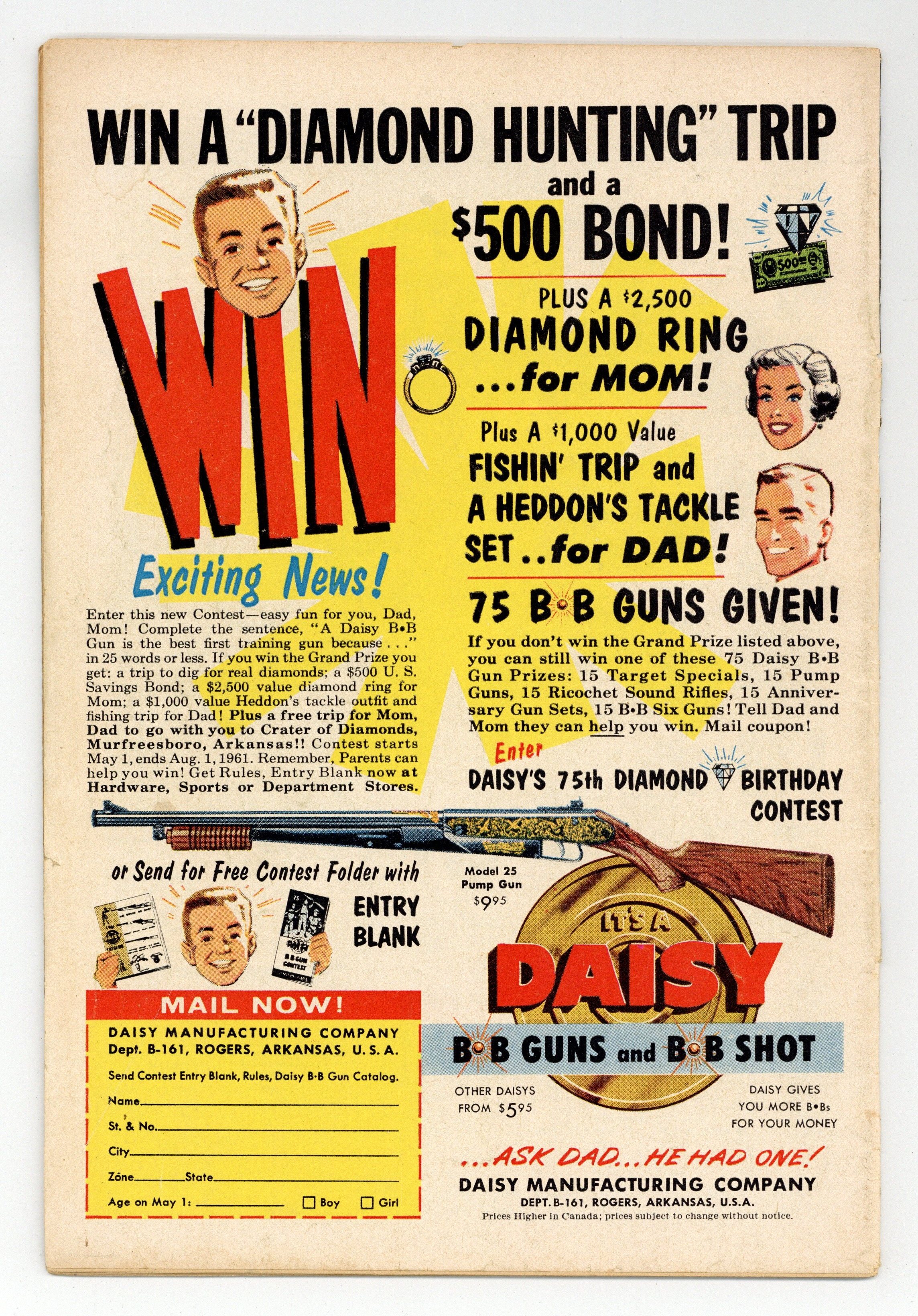 Starts Jan 3 Cover pencils by Carmine Infantino, inks by Murphy Anderson. 1st Silver Age appearance of Golden Age Flash; 1st mention of an Earth-2 where Golden Age heroes live. Flash of Two Worlds!, script by Gardner F. Fox, pencils by Carmine Infantino, inks by Joe Giella; Barry Allen appears at the Community Center in Central City to perform for kids, and during one of his amazing tricks, is mysteriously transported to Keystone City, a place that he recalls that the original Flash once lived; The two meet and Barry surmises that Jay lives on a parallel Earth, one that evidently Earth-1 writer Gardner Fox tuned in on when he wrote the adventures of the Flash in the 1940's; Jay tells Barry that a crime wave has hit Keystone City and asks Barry for his help. Fastest Trips Around The World! fact page. Promo for Superman Annual #3 and Secret Origins #1. Promo for Batman Annual #1, pencils by Curt Swan, Sheldon Moldoff, and Dick Sprang, inks by Charles Paris. Palisades Amusement Park ad with Superman. 36 Pages, Full Color. Cover price $0.10.