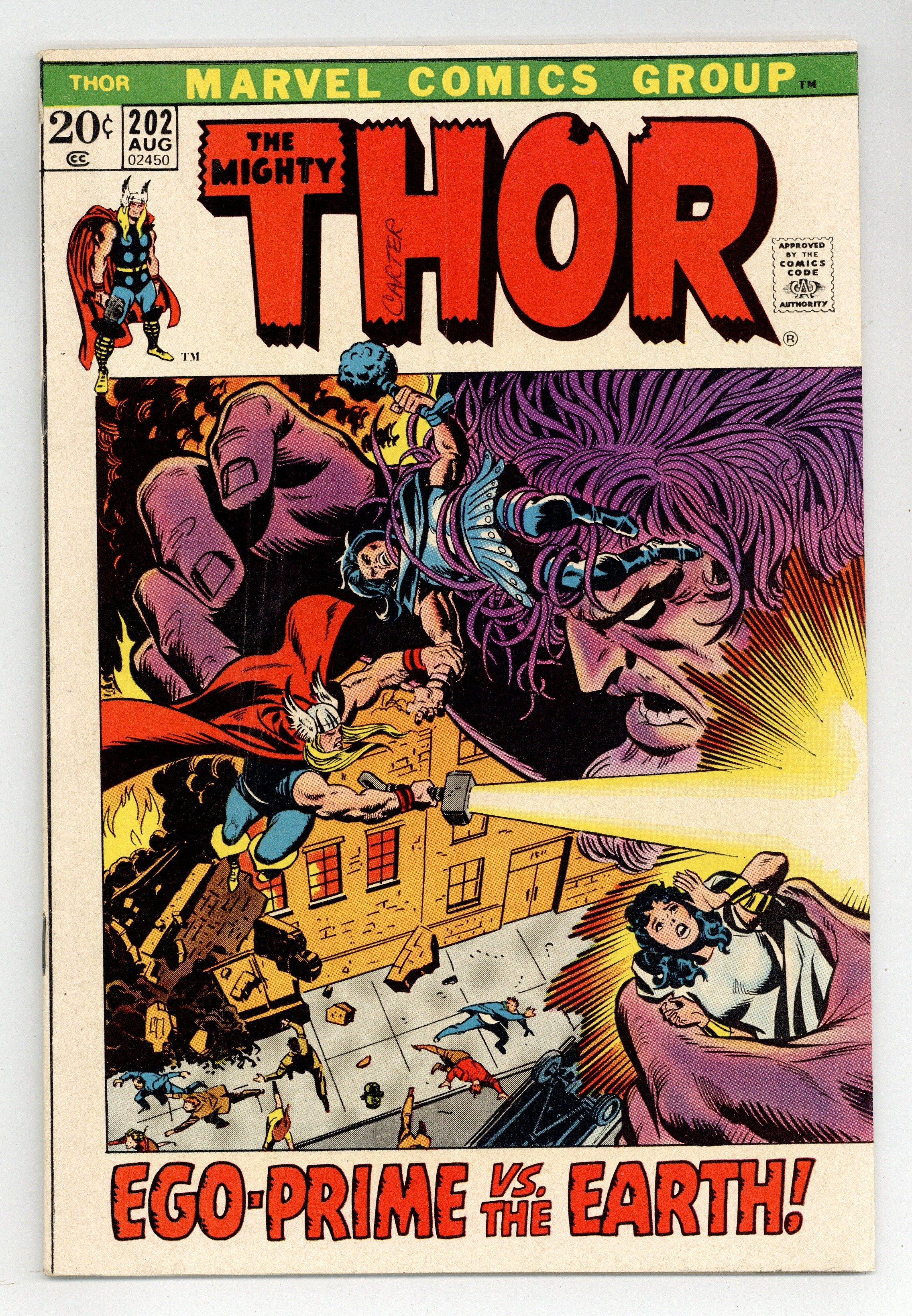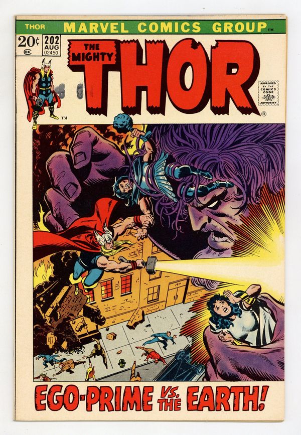 Starts Mar 23 Cover pencils by John Buscema, John Romita (alterations), and Marie Severin (alterations), inks by John Romita (alterations) and Marie Severin (alterations). "And None Dare Stand 'Gainst Ego-Prime!", script by Gerry Conway, pencils by John Buscema, inks by Vince Colletta; Ego-Prime has come to Earth, and not all the Asgardian's power can stop him; Meanwhile, Heimdall finds one of the people in his quest - Jackson Kimbal. Appearances by Sif, Hogun, Fandral, Volstagg, Karnilla, Hildegarde, Heimdall, and Odin. 36 pgs., full color. $0.20. Cover price $0.20.
