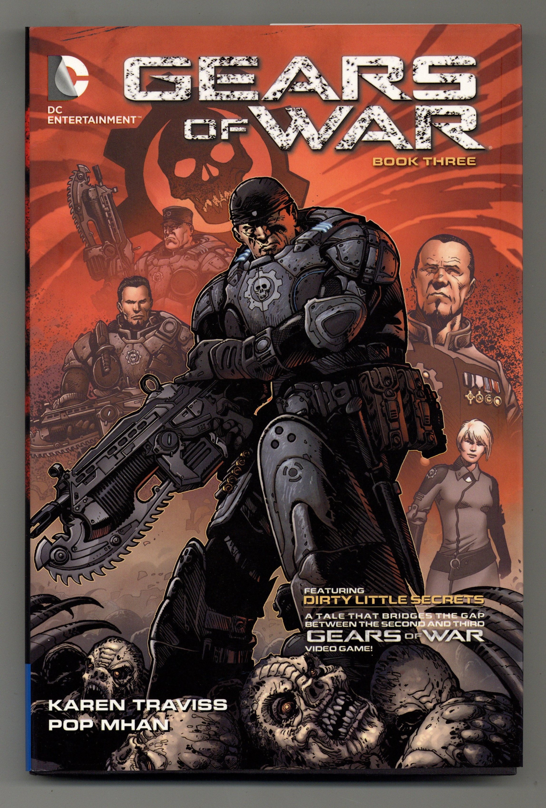 Starts Mar 9 Volume 3 - 1st printing. Collects Gears of War (2008) #14-24. Written by Joshua Ortega and Karen Traviss. Art by Leonardo manco. Cover by Colin Wilson. The best-selling Epic Games franchise continues with these tales from issues #14-24 featuring the story "Dirty Little Secrets" from best-selling author Karen Traviss that bridges the gap between the Gears of War 2 and Gears of War 3 video games. Hardcover, 256 pages, full color. MATURE READERS Cover price $24.99.
