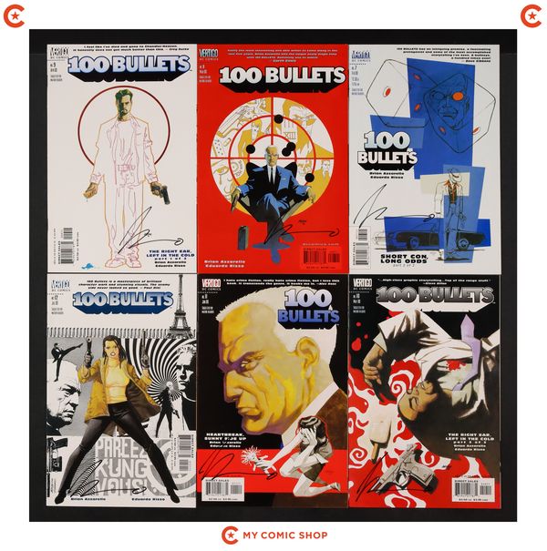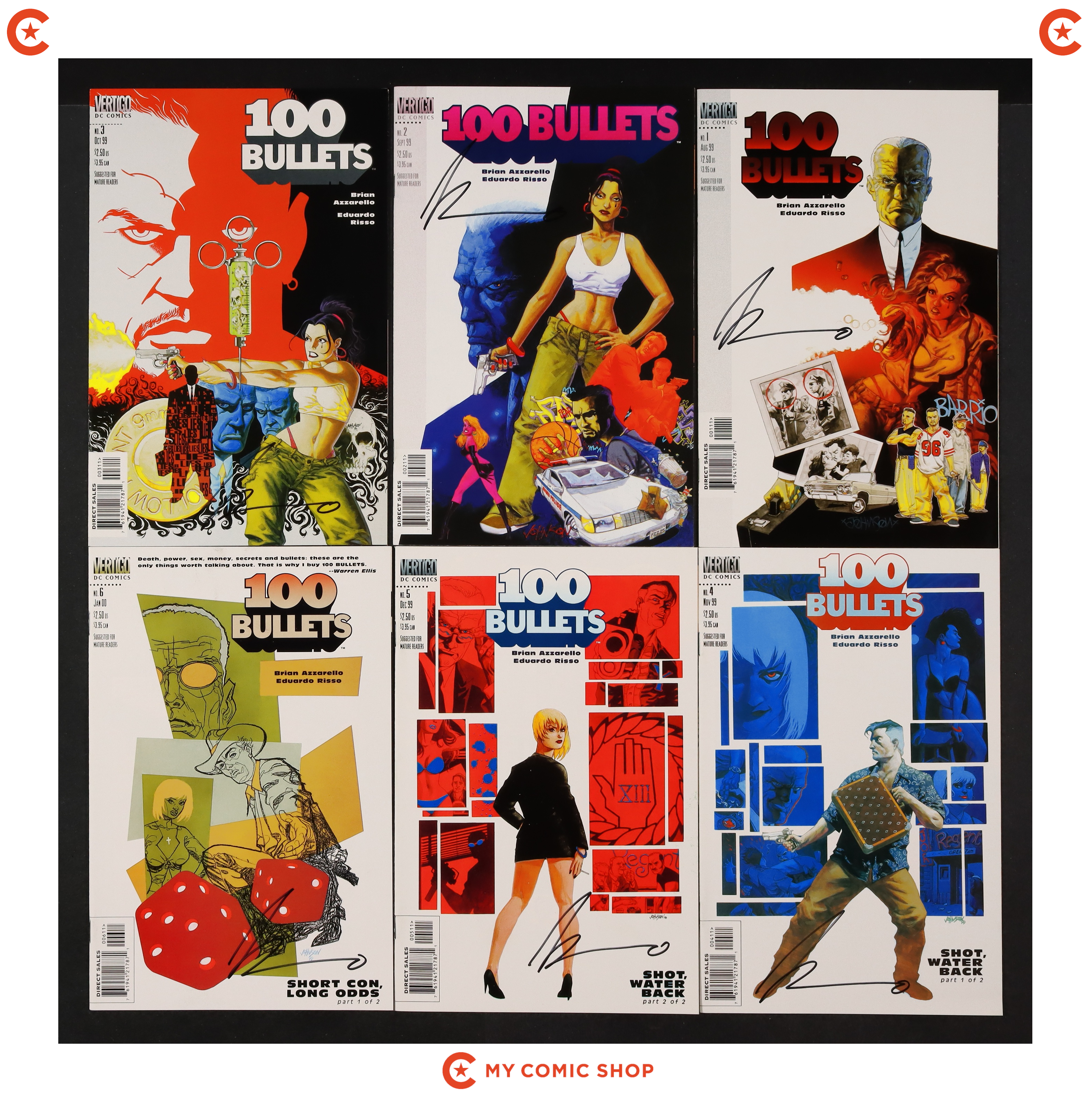 Issues 1-12 of 100 Bullets (1999 DC Vertigo) signed by Brian Azarello. No autograph certification is included. Most will grade in the FN to VF range.