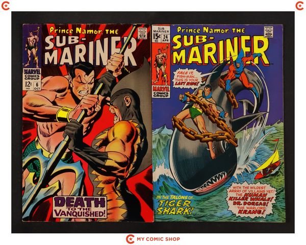 Issues 2-4, 6, and 24 of Sub-Mariner (1968 1st Series). Most will grade in the VG to GD range.