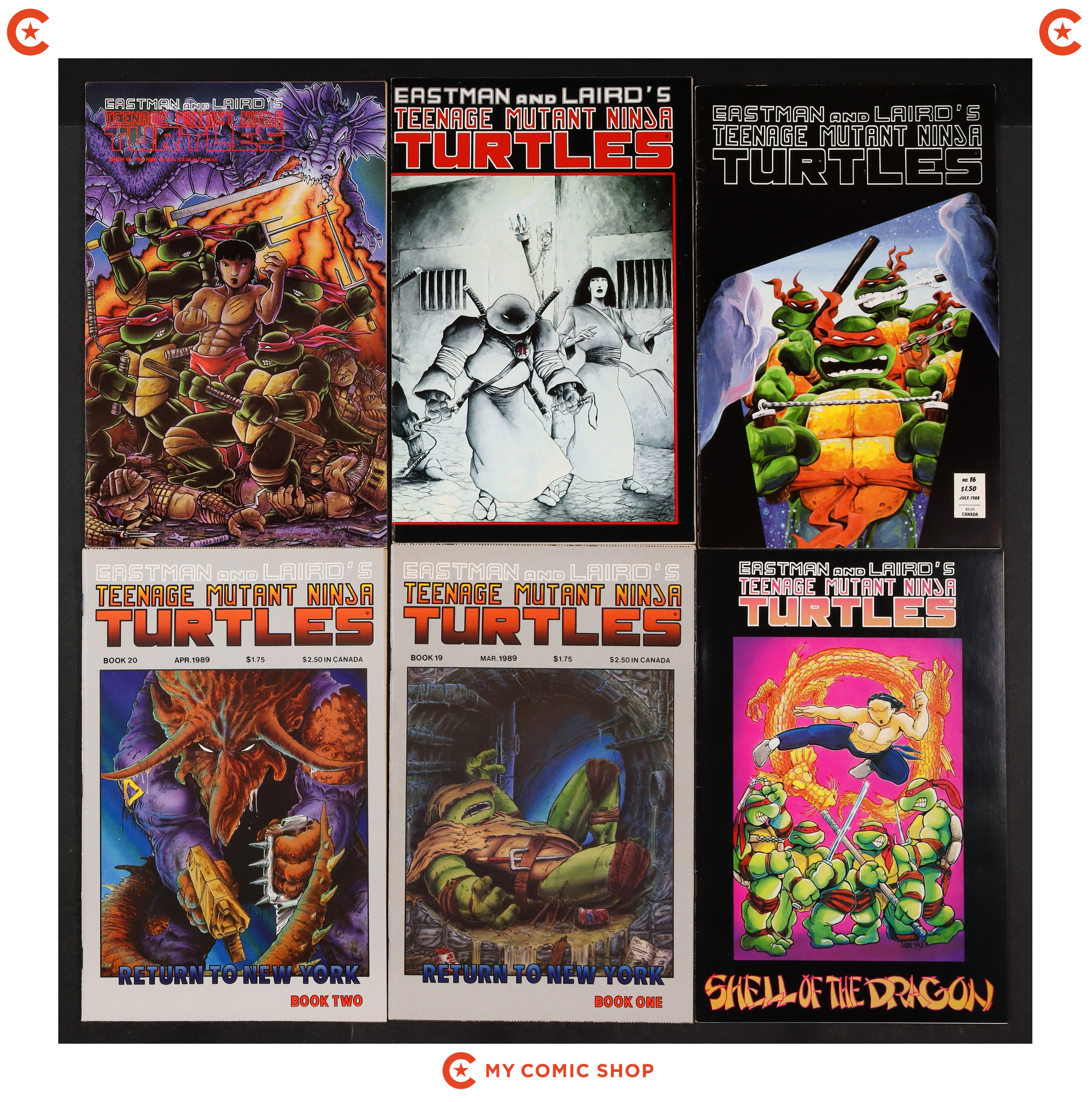 Issues 16, 17, 18, 18REP.2ND, 19, 20 of Teenage Mutant Ninja Turtles (1984 Mirage). Most will grade in the VG/FN to FN/VF range.