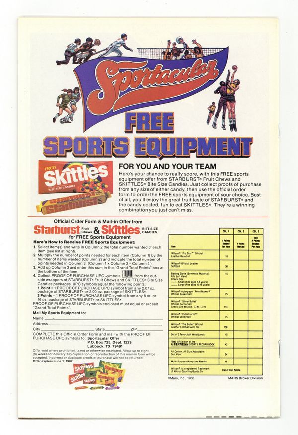 Starts May 18 Direct Edition. "Fun 'N' Games!" Story by Chris Claremont. Art by John Romita, Jr. and Dan Green. Warlock's, the techno-organic creature that has befriended the New Mutants, past comes back to haunt his new friends. Colossus, Nightcrawler, and Rogue find themselves in the fight of their lives when Warlock's malevolent father Magus comes calling. 36 pgs. Cover price $0.65.