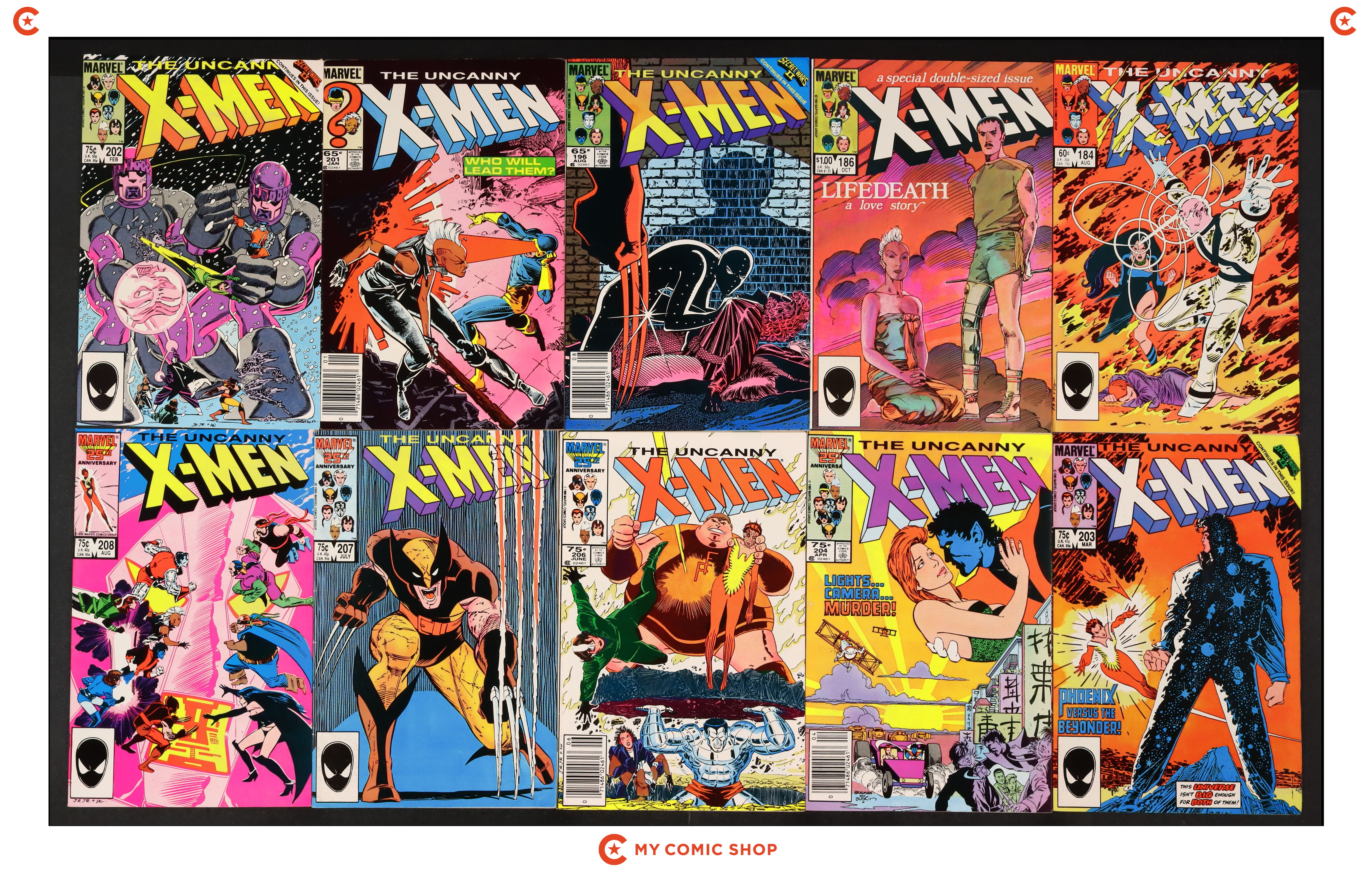 Issues 184D, 186D, 196N, 201N, 202D, 203, 204N, 206N, 207D, 208D of Uncanny X-Men (1963 1st Series). Most will grade in the VG/FN to VF range.