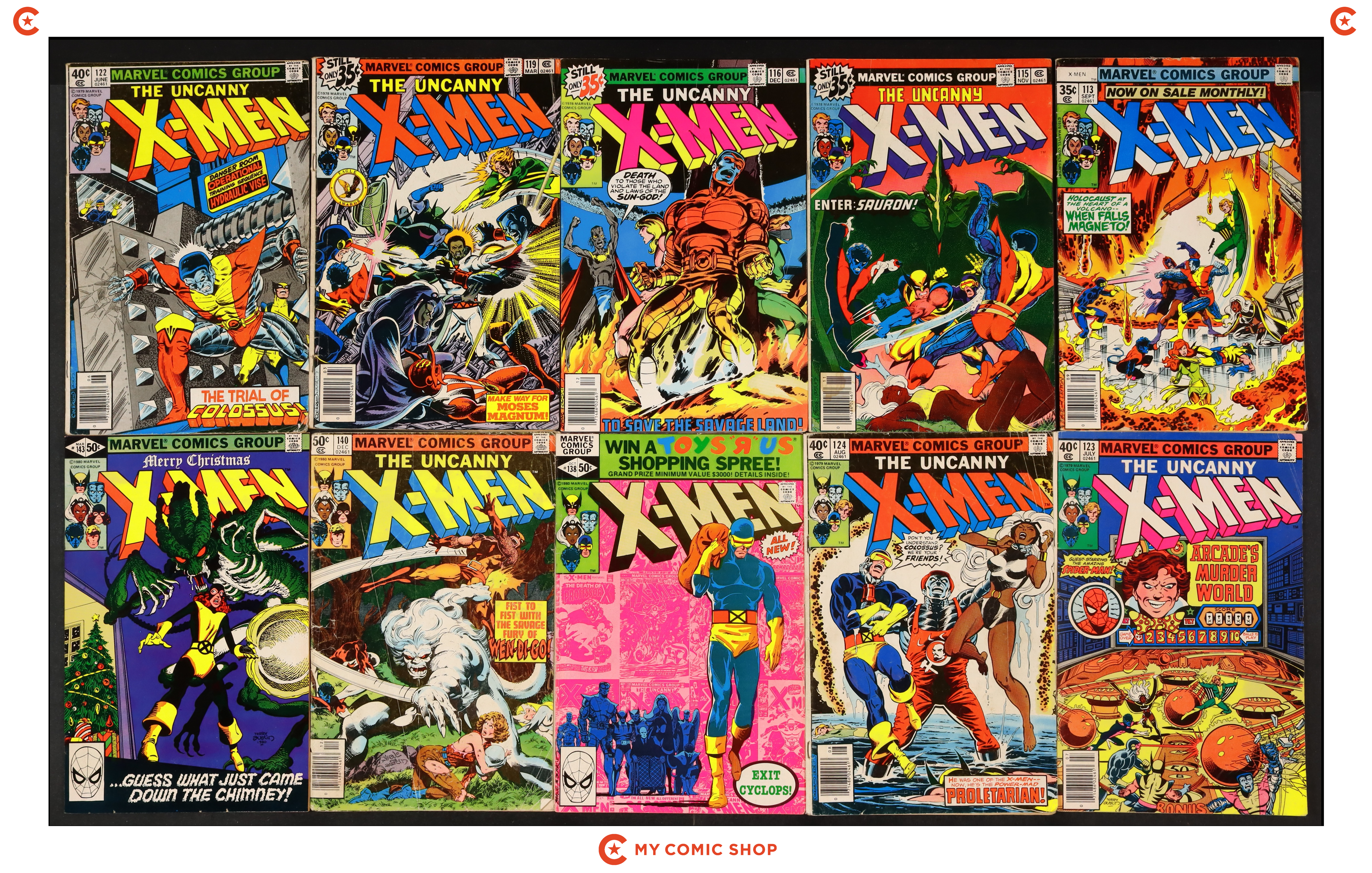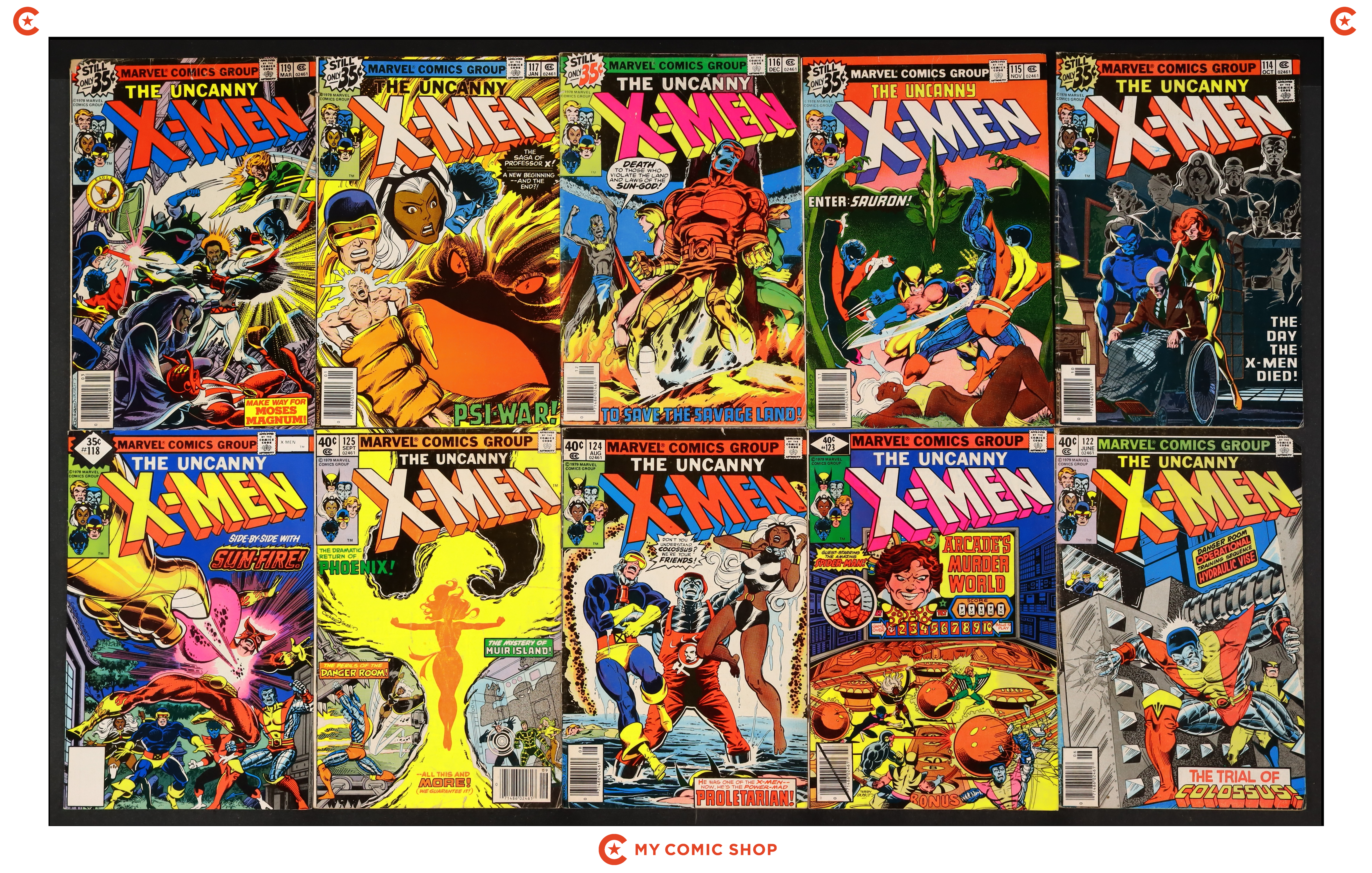 Issues 114, 115, 116, 117, 119, 122N, 123D, 124N, 125N of Uncanny X-Men (1963 1st Series), and issue 118 of Uncanny X-Men (1963 1st Series) Whitman Variants. Most will grade in the GD to VG range with #122, and #123D grading FR, and #115 grading PR(missing back cover).