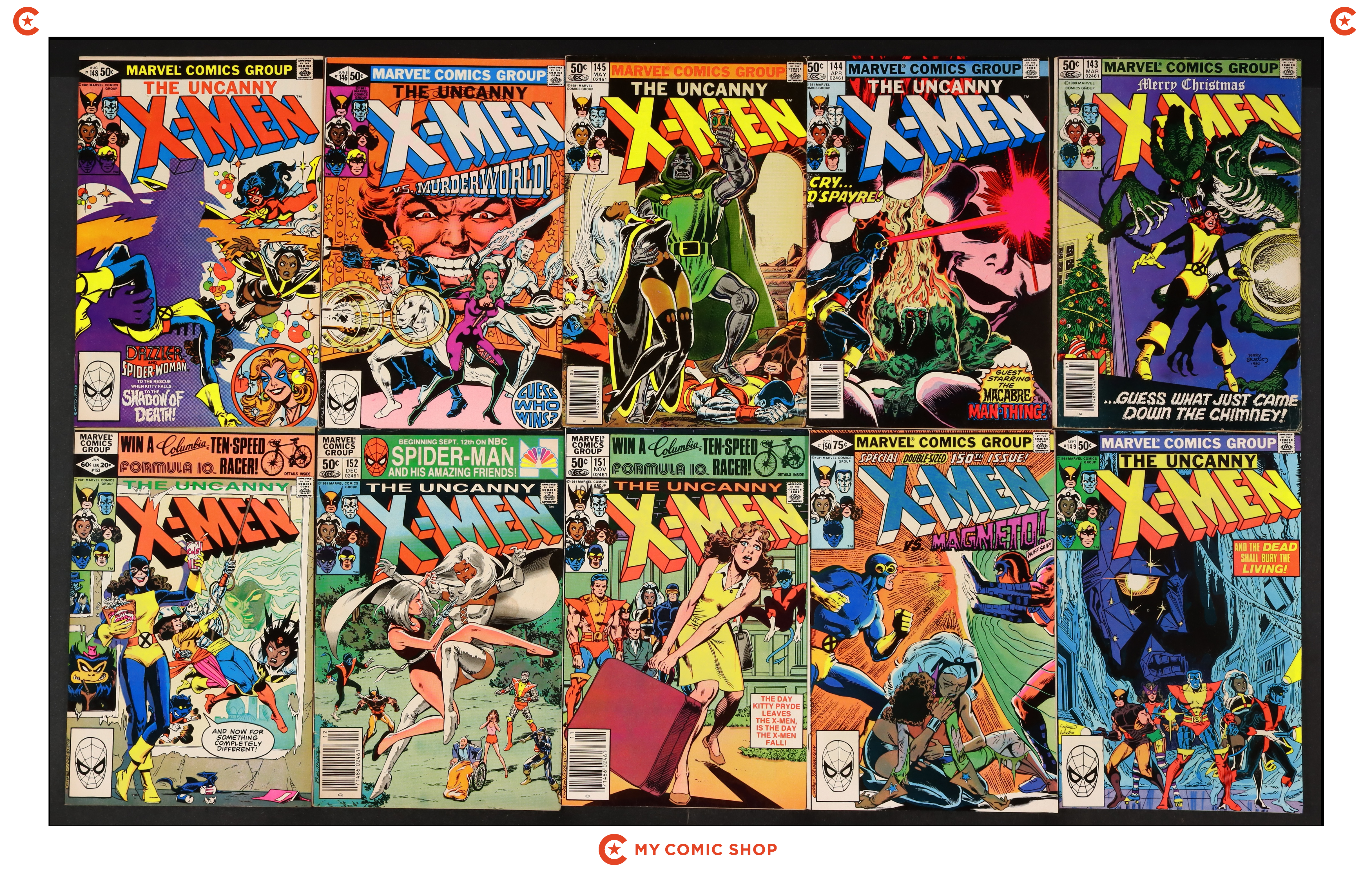 Issues 143D, 144D, 146D, 147N, 148D, 149D, 150D, 151D, 152D, 153N of Uncanny X-Men (1963 1st Series). Most will grade in the VG to FN range.
