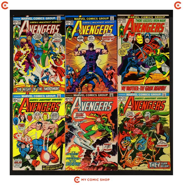Issues 102, 109, 114-117 of Avengers (1963 1st Series). Most will grade in the VG to FN range with 116 grading GD.