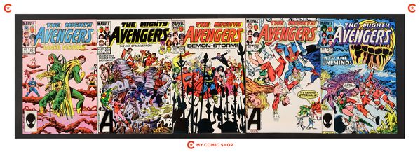 Ends Mar 9 7:29 PM CST Bid History 5 bids Current Bid $37 Your Secret Max Bid If you'd like to bid, please log in or register. Vision Quest Part 4 of 4. "New Faces" Script by John Byrne. Pencils by John Byrne. Inks by Mike Machlan. Cover by John Byrne. The Vision has been reassembled thanks to the brilliance and hard work of Hank Pym. But complications remain. First, the Vision's appearance has changed due to the trauma his bio-synthetic skin suffered during his disassembly. And second, while Hank has restored the Vision's memories, he can't recreate the emotional attachment to them. For that the brain patterns of Simon Williams are needed. But when Wanda finds Simon and asks him to cooperate, he refuses. Then Wonder Man faces the wrath of the Scarlet Witch! Wow, the West Coast Avengers are approaching rock bottom. And the recent addition of the U.S. Agent is not helping. (Notes: The cover to this issue is an homage to John Buscema and George Klein's classic cover to Avengers (1st series) #57 -- the first appearance of the silver age Vision. The white Vision debuted in the MCU in the final episode of the WandaVision Disney+ series. The Vision Quest storyline was a distressing read for long-time fans of the Avengers. Several years later during the Gatherers saga, the Vision regains his red-hued body. [See Avengers 360.] The letters page contains a statement of ownership: average print run 306,775; average paid circulation 178,125.) 32 pages. Cover price $0.75.