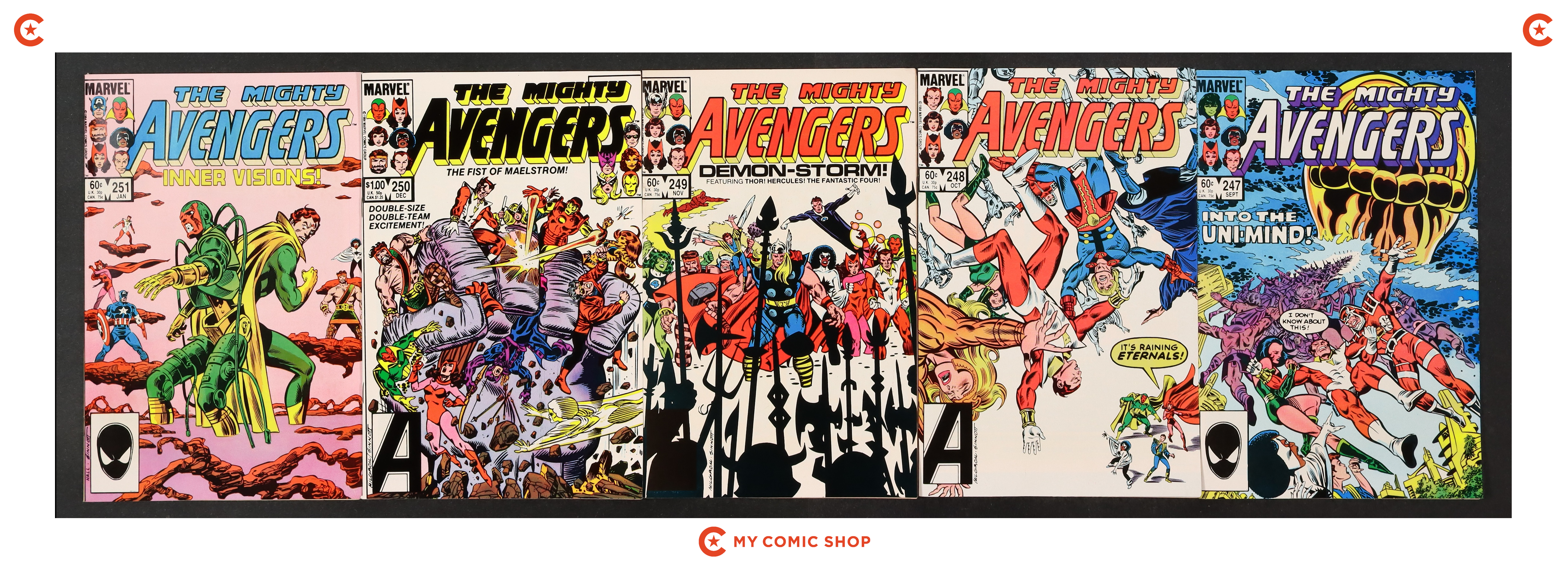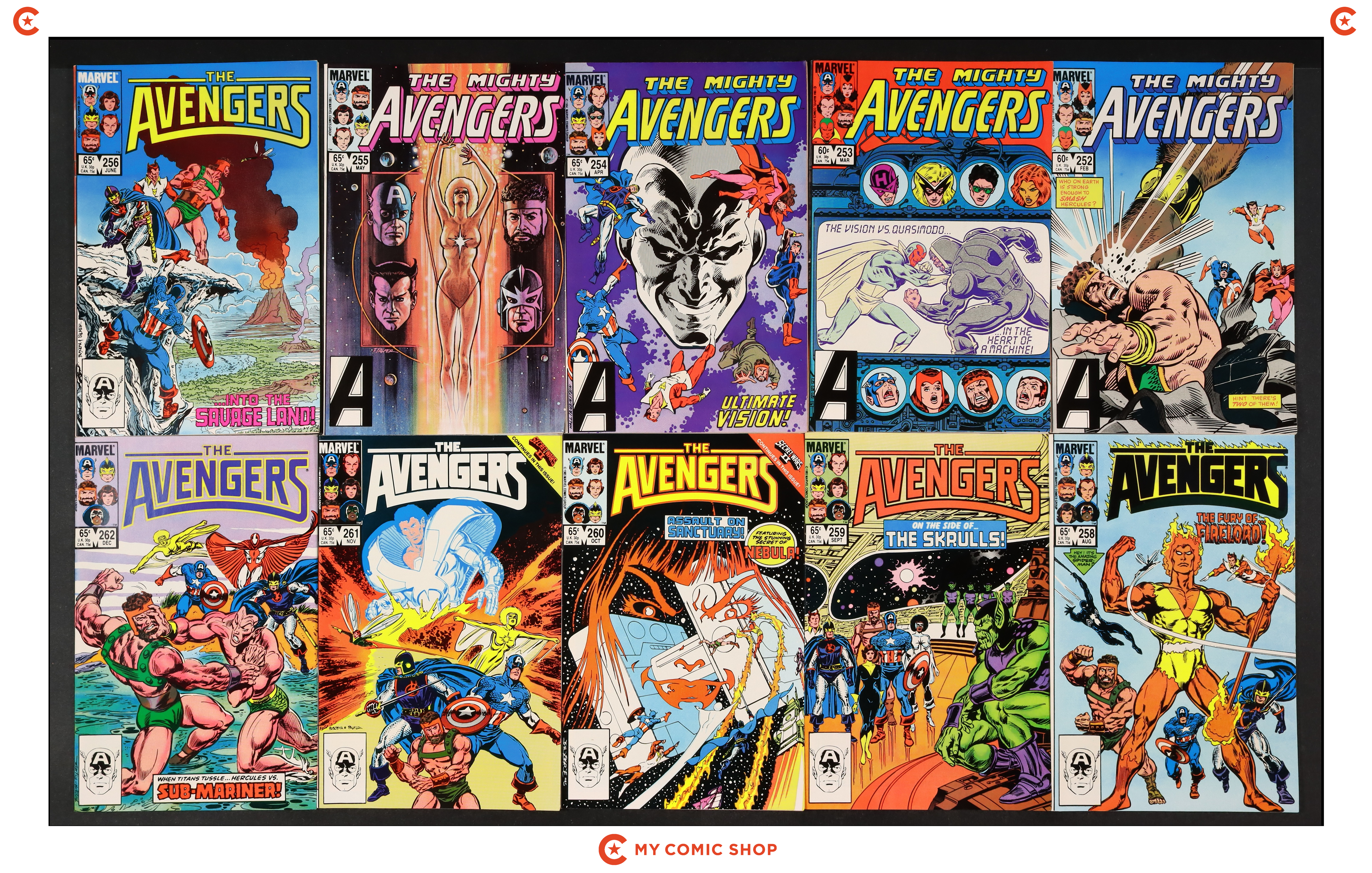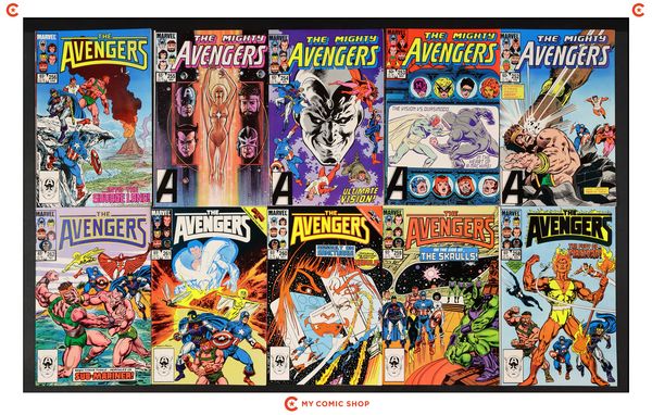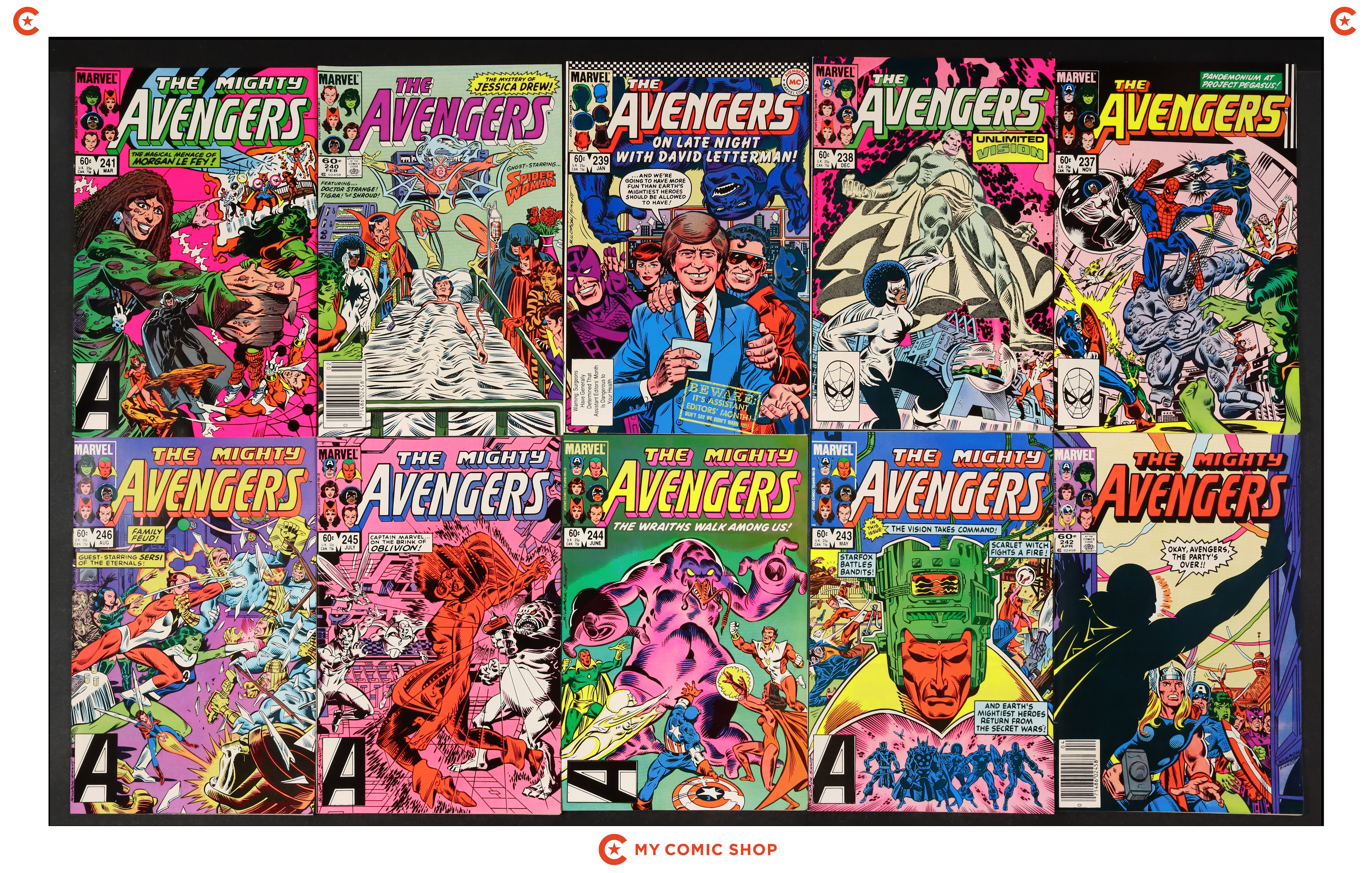 Issues 237-246, 247D, 248, 249D, 250, 251D of Avengers (1963 1st Series). Most will grade in the FN to VF+ range.