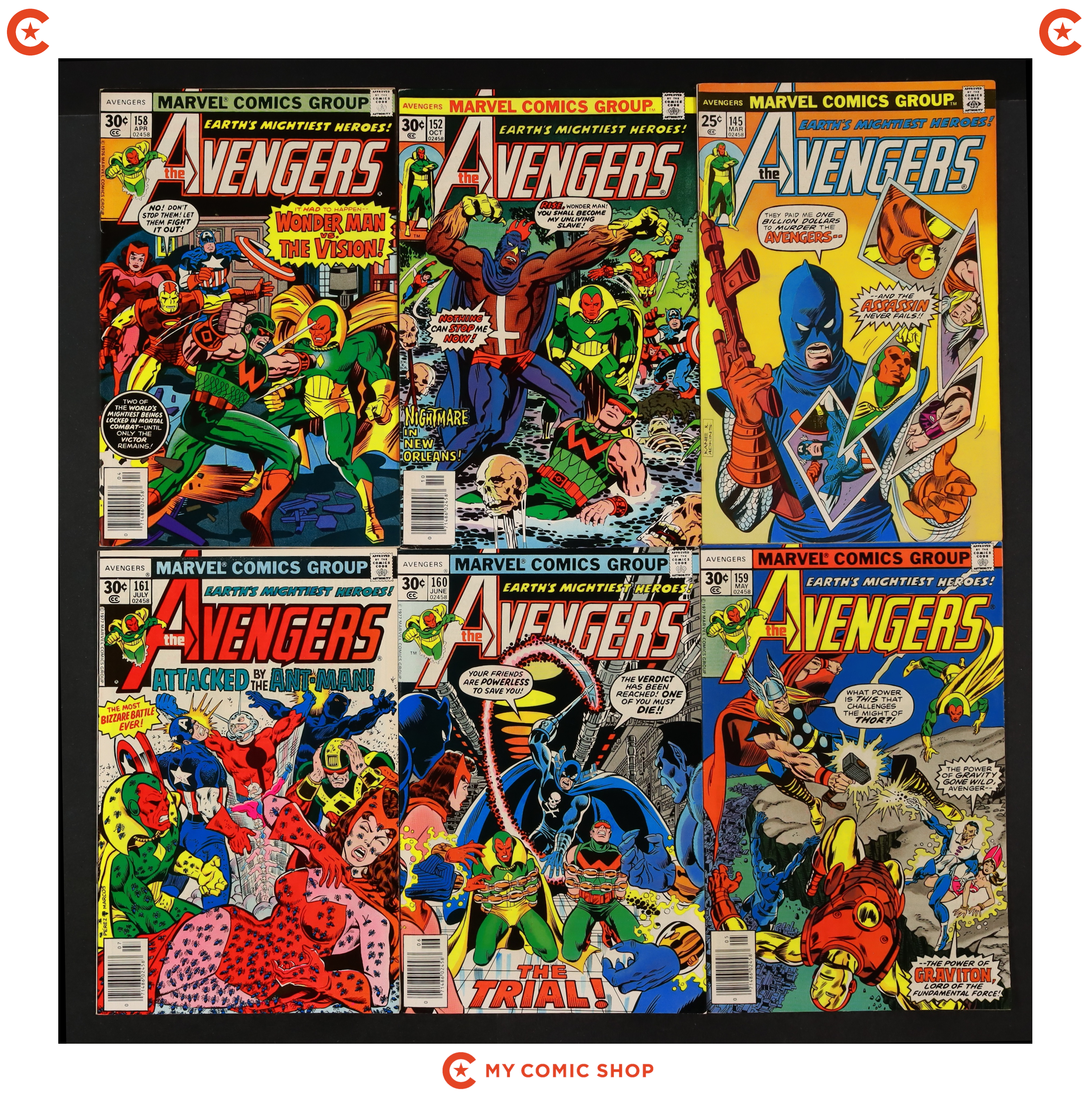Issues 151, 154, 155, 160-166 of Avengers (1963 1st Series). Most will grade in the GD to VG range with #162 grading FN.