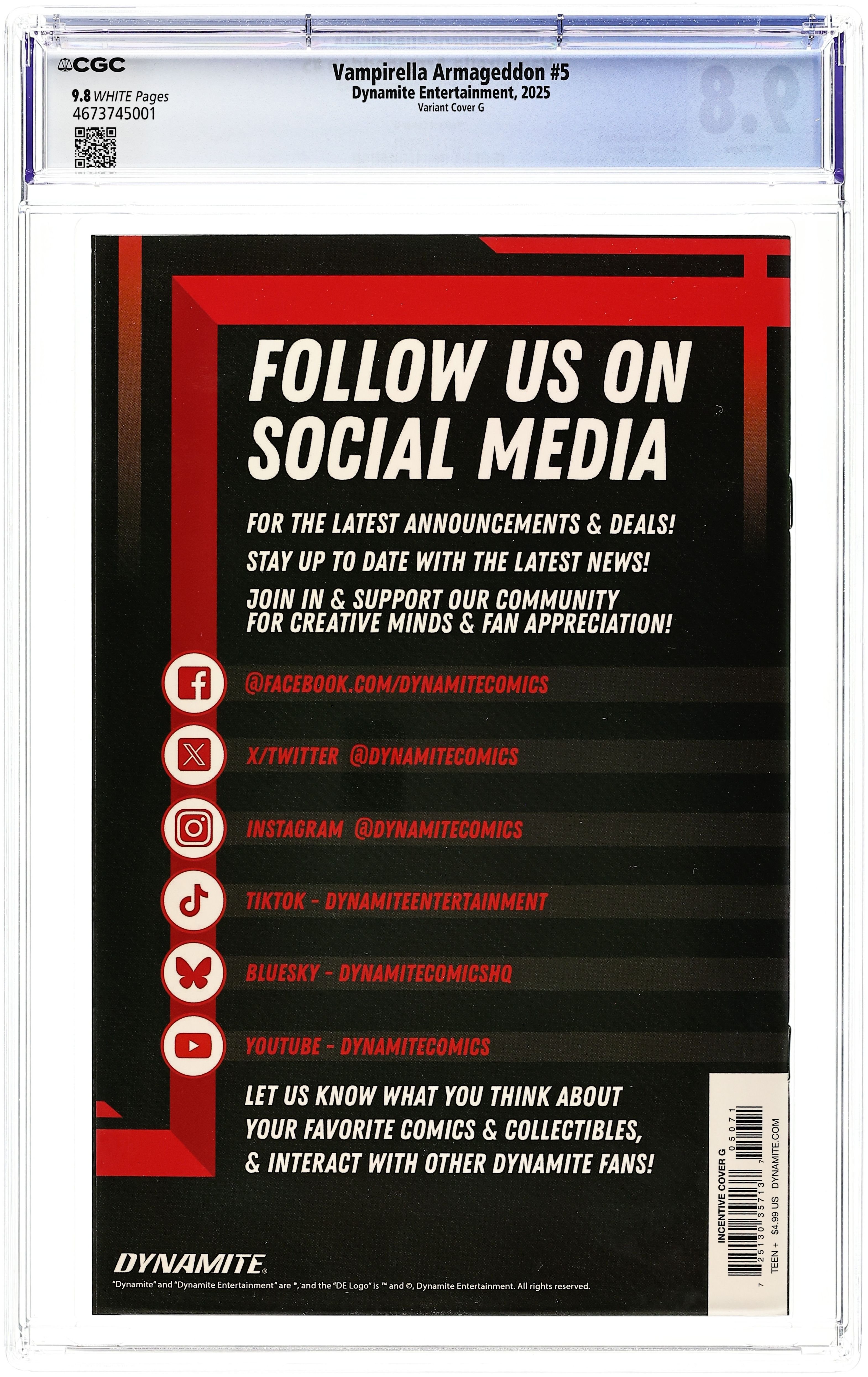 Tags: VampirellaPublished Nov 2025 by Dynamite Entertainment.Vampirella Armageddon (2025 Dynamite) 5G CGC 9.8