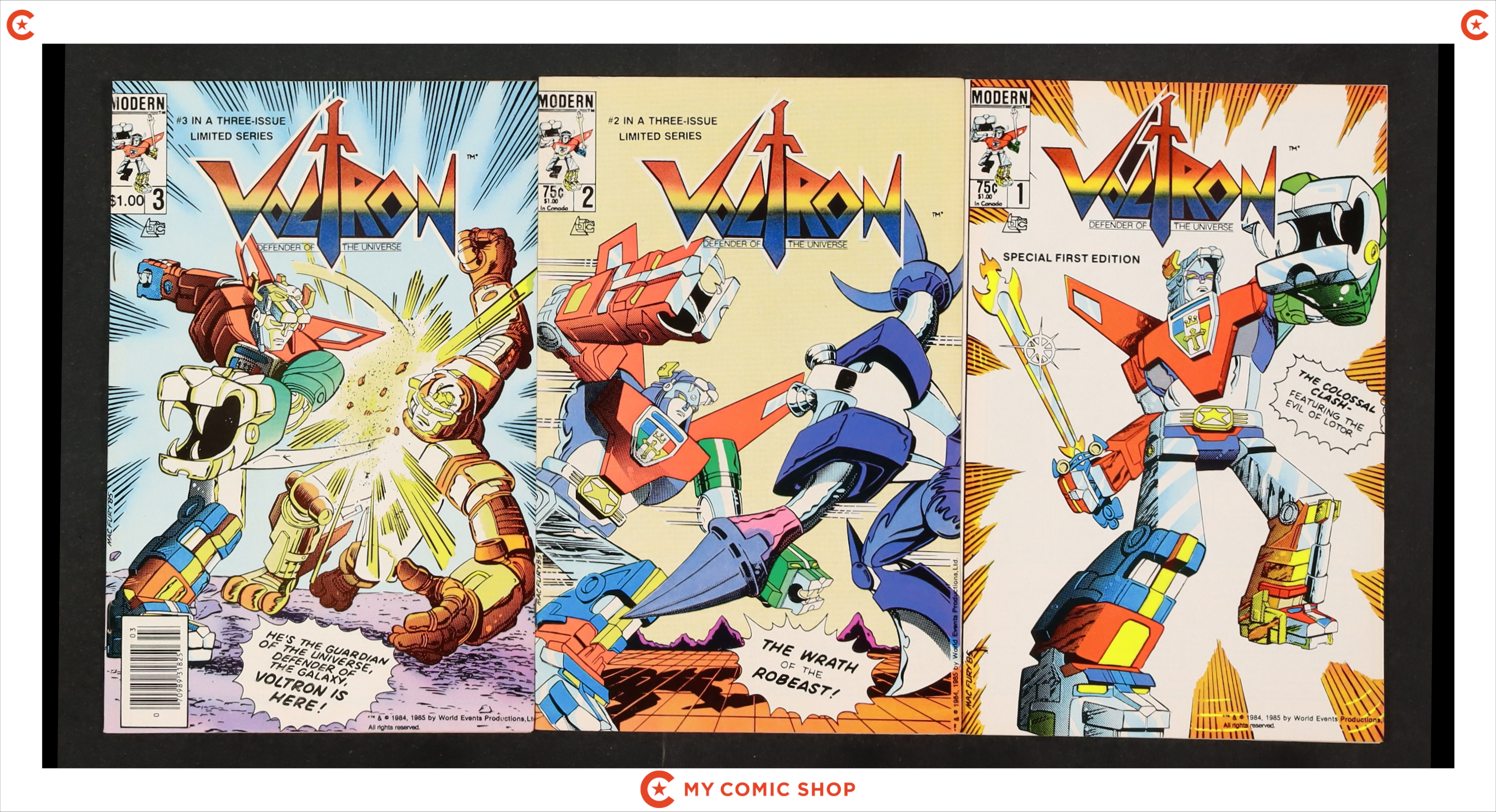 Issues 1D, 2D of Voltron (1985 Modern); plus Canadian Price Variant #3. Most will grade in the FN to FN/VF range.