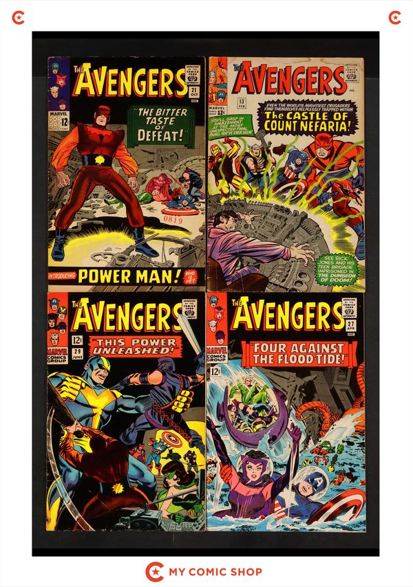 Issues 13, 21, 27, 29 of Avengers (1963 1st Series). Most will grade in the GD/VG to VG+ range.