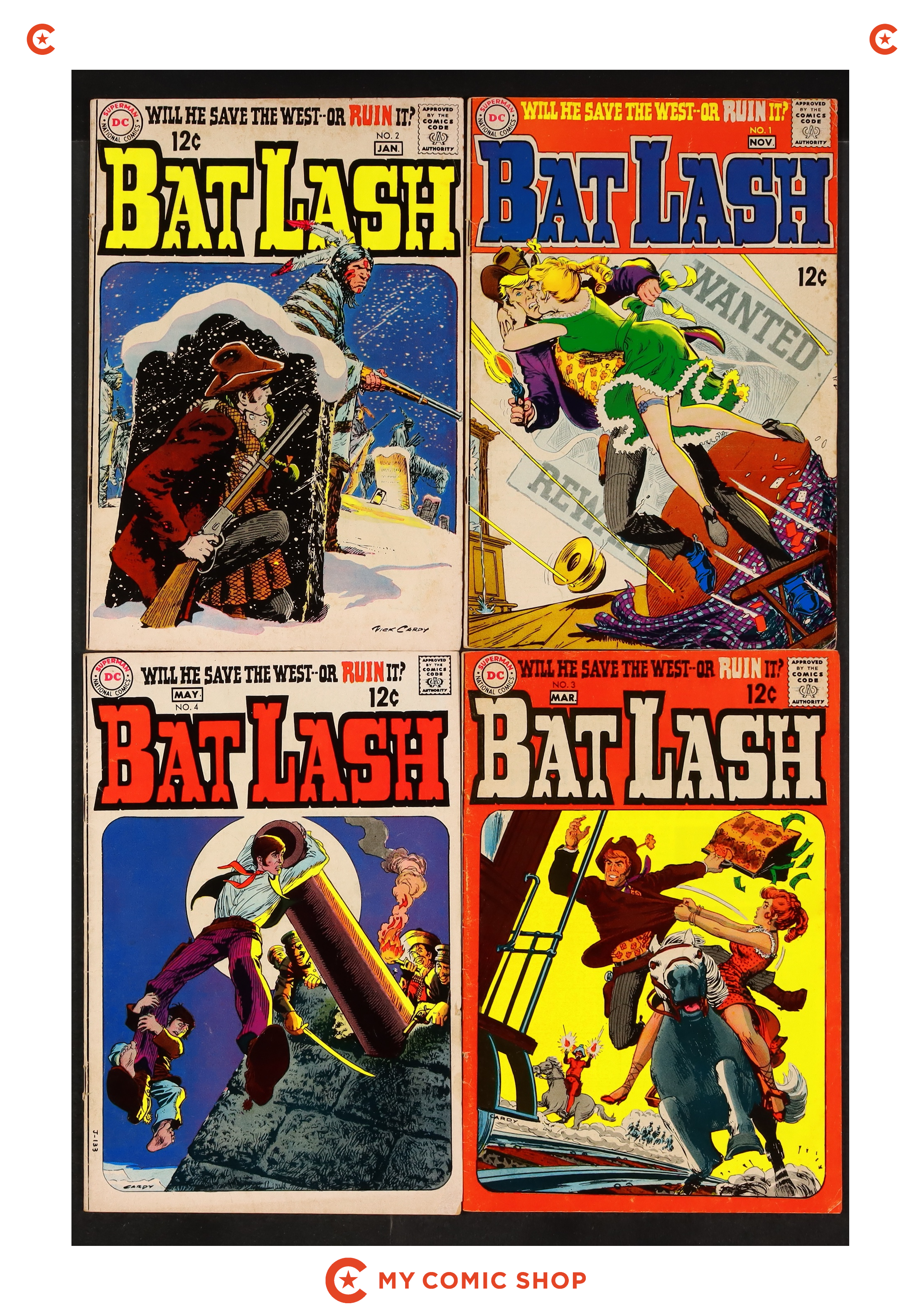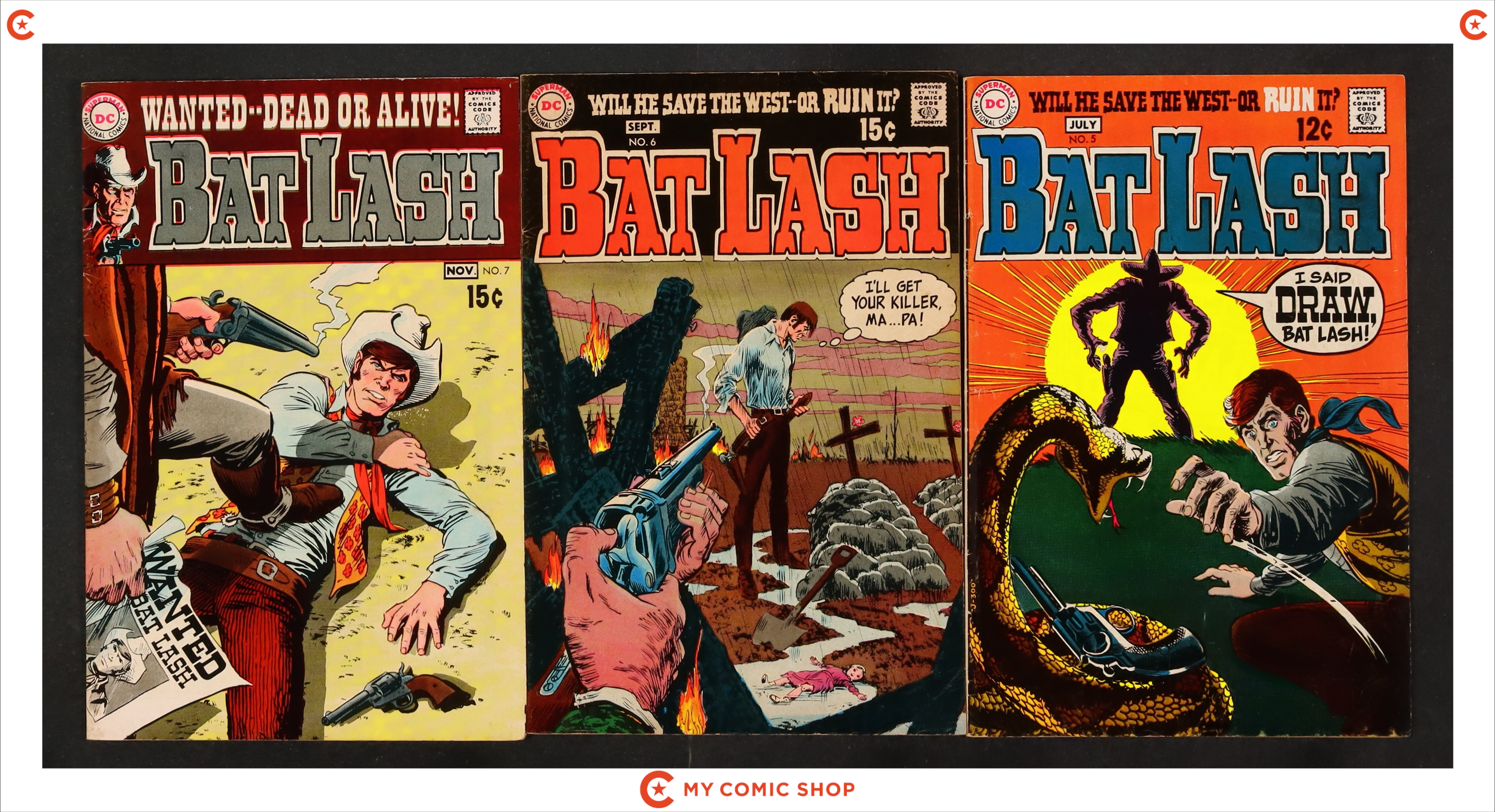 Issues 1, 2, 3, 4, 5, 6, 7 of Bat Lash (1968 1st Series). Most will grade in the VG- to VG/FN range.