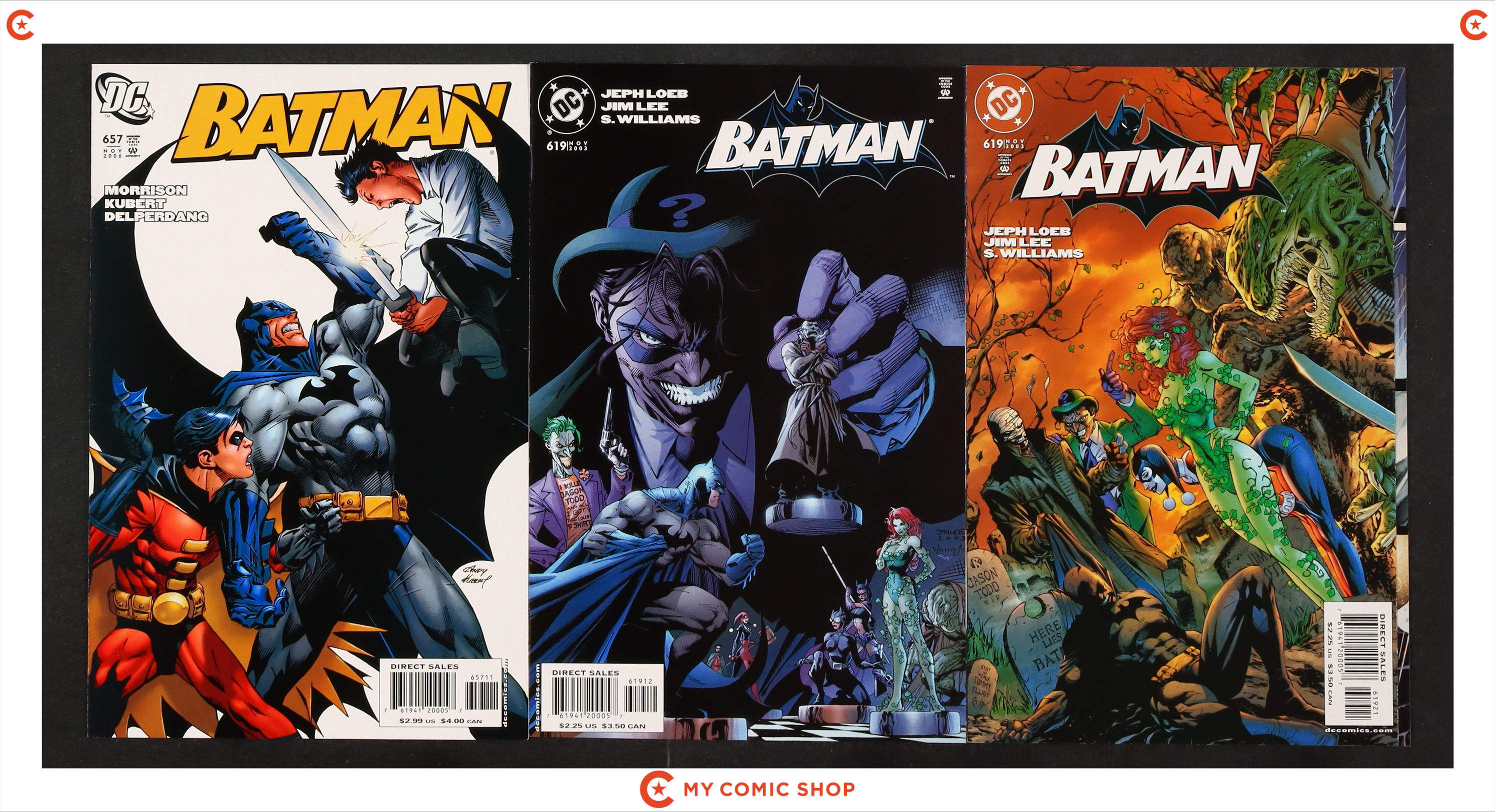 Issues 613, 614, 615, 617, 618, 619A, 619B, 619C, 657 of Batman (1940). Most will grade in the VF- to NM- range.