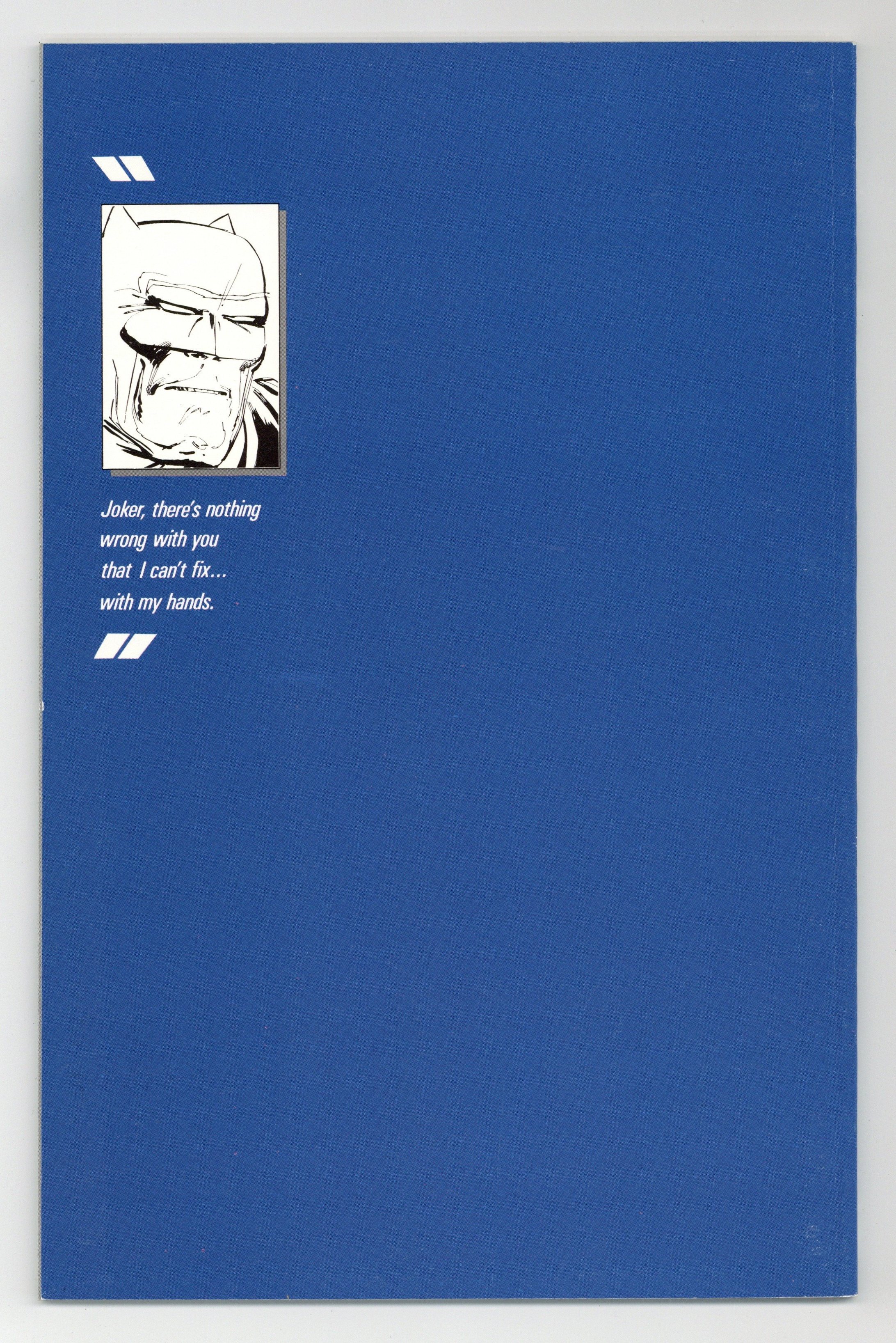 Starts May 18 1st printing. NOTE: 2nd printing of #3 is clearly labeled as such on the inside cover. "Hunt The Dark Knight," script and pencils by Frank Miller, inks by Klaus Janson and Frank Miller; Batman battles the Joker, who has convinced his psychiatrist, Dr. Bartholomew Wolper, that he is sane and regretful; Seeking to discredit Batman, Wolper exhibits the Joker on a late-night show ("David Endochrine", parodying Late Night with David Letterman) to try and show that the Joker is actually a victim of Batman's own psychosis; As the police attack Batman, the Joker murders everyone in the studio; Batman follows him to Selina Kyle's place, where the former Catwoman has become a depressed alcoholic; Superman is introduced as an undercover agent for the American government. 52 pgs., full color. Cover price $2.95.