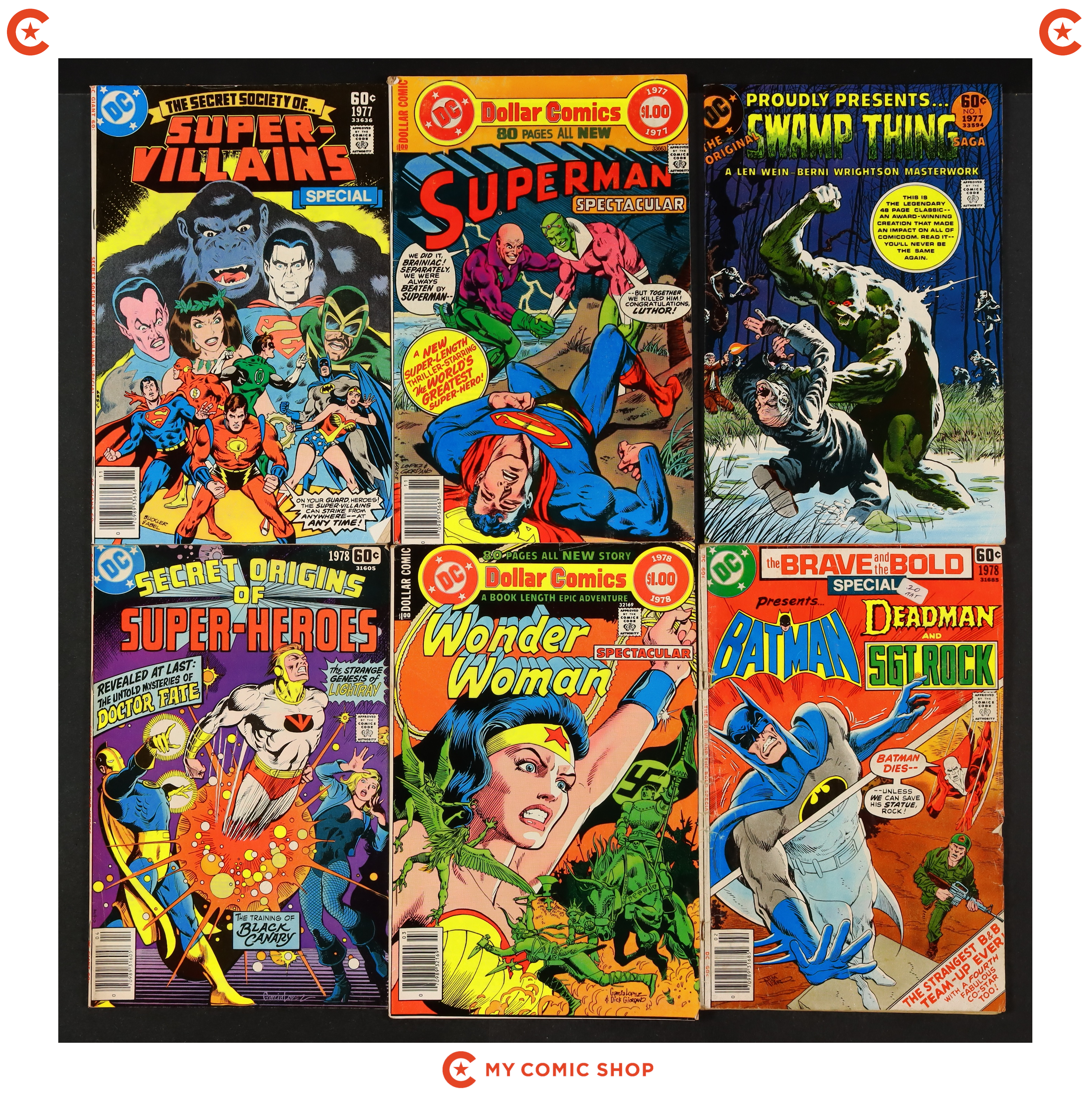 Issues 1-4, 6-10, and 12 of DC Super Stars (1976). Most will grade in the FN to VG range with a couple grading GD.