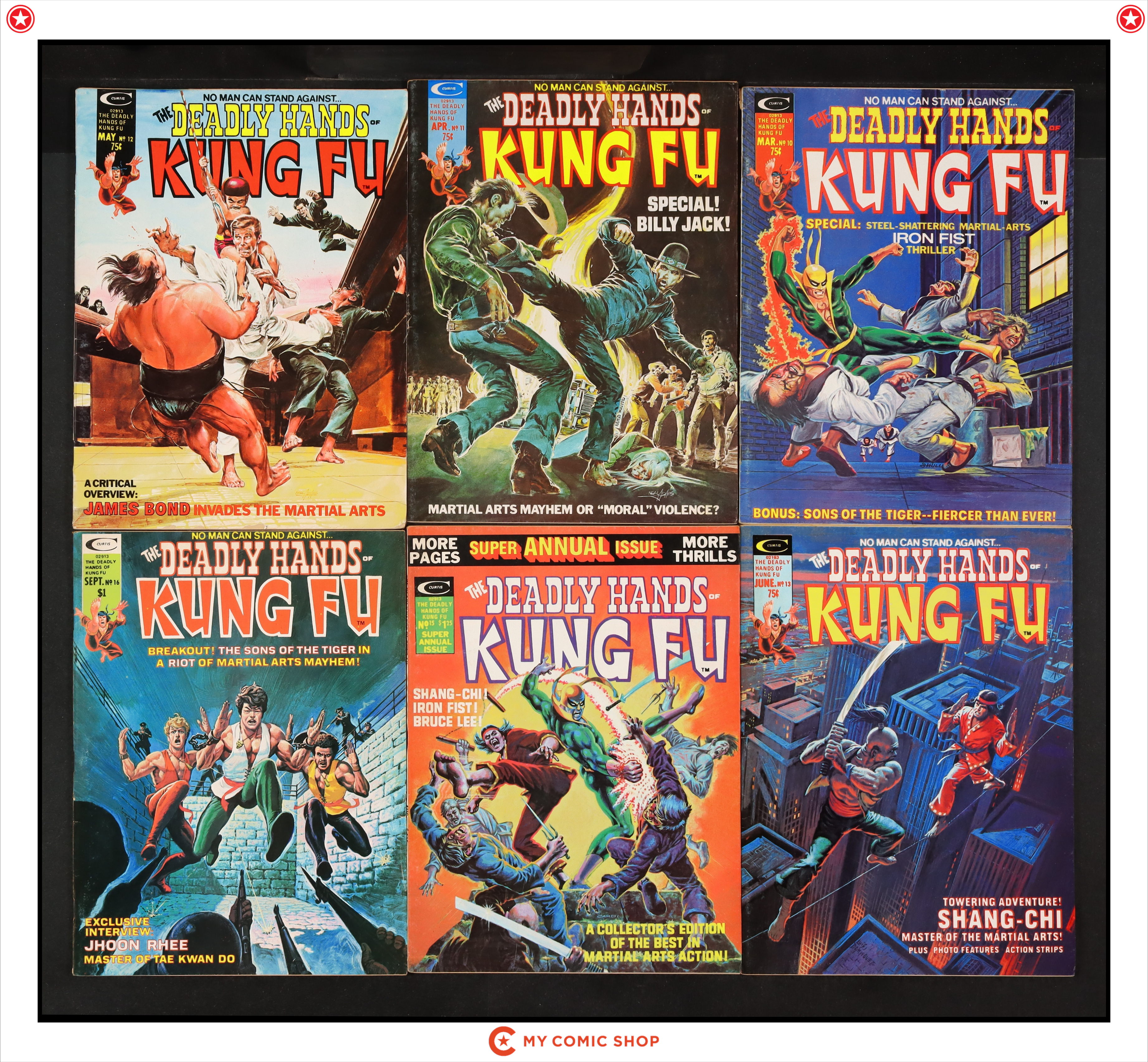Issues 6-13, 18, and 31 of Deadly Hands of Kung Fu (1974 Magazine). Most will grade in the FN to VG range.