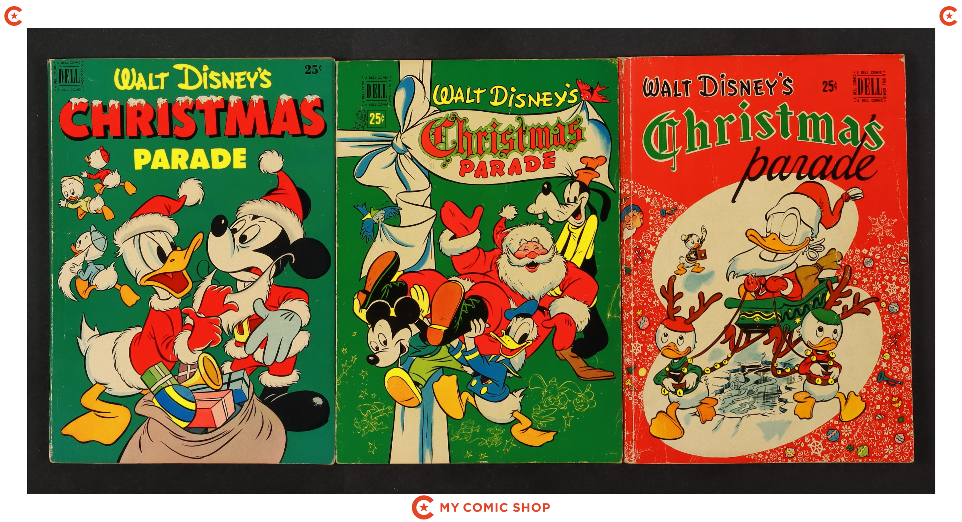 Issues 1-3, 5, and 6 of Dell Giant Christmas Parade (1949-1958 Dell). Most will grade in the FN to VG range.
