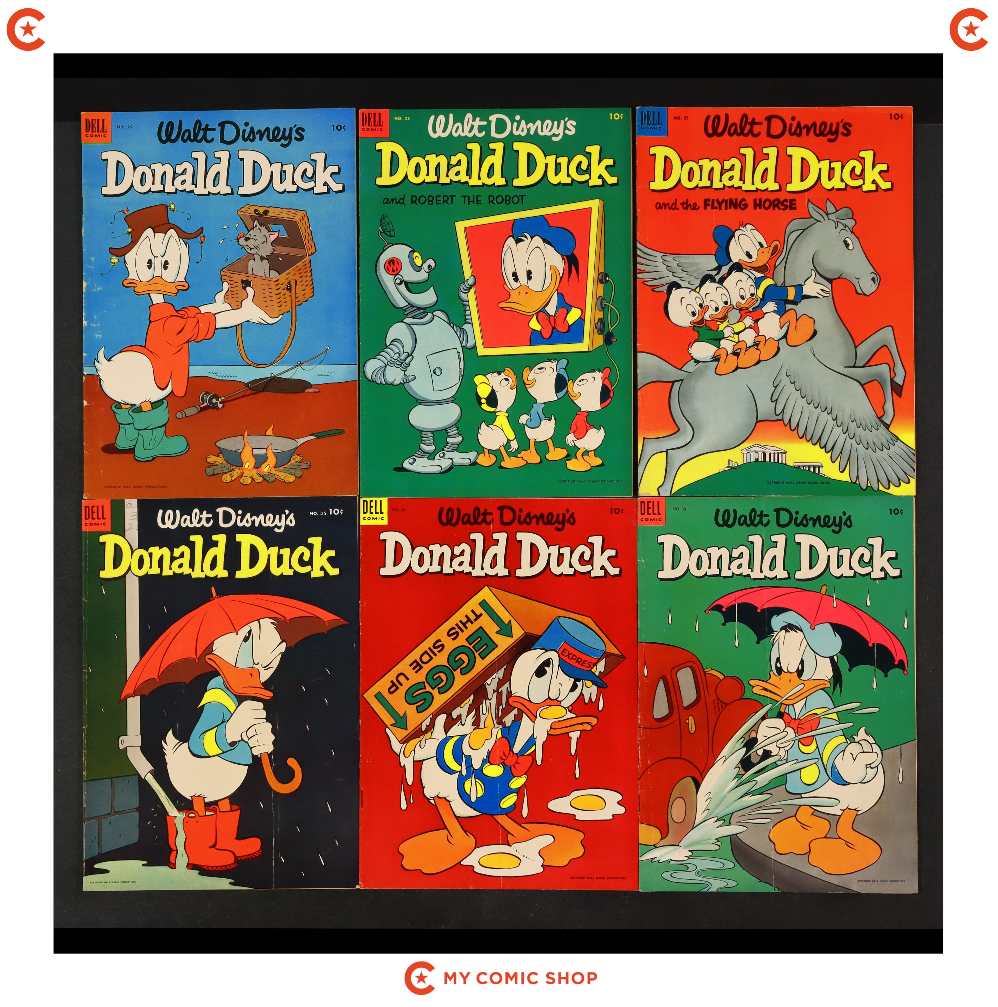 Issues 27-29, 33-38, and 43 of Donald Duck (1952-1980 Dell/Gold Key/Whitman/Gladstone). Most will grade in the VG range.