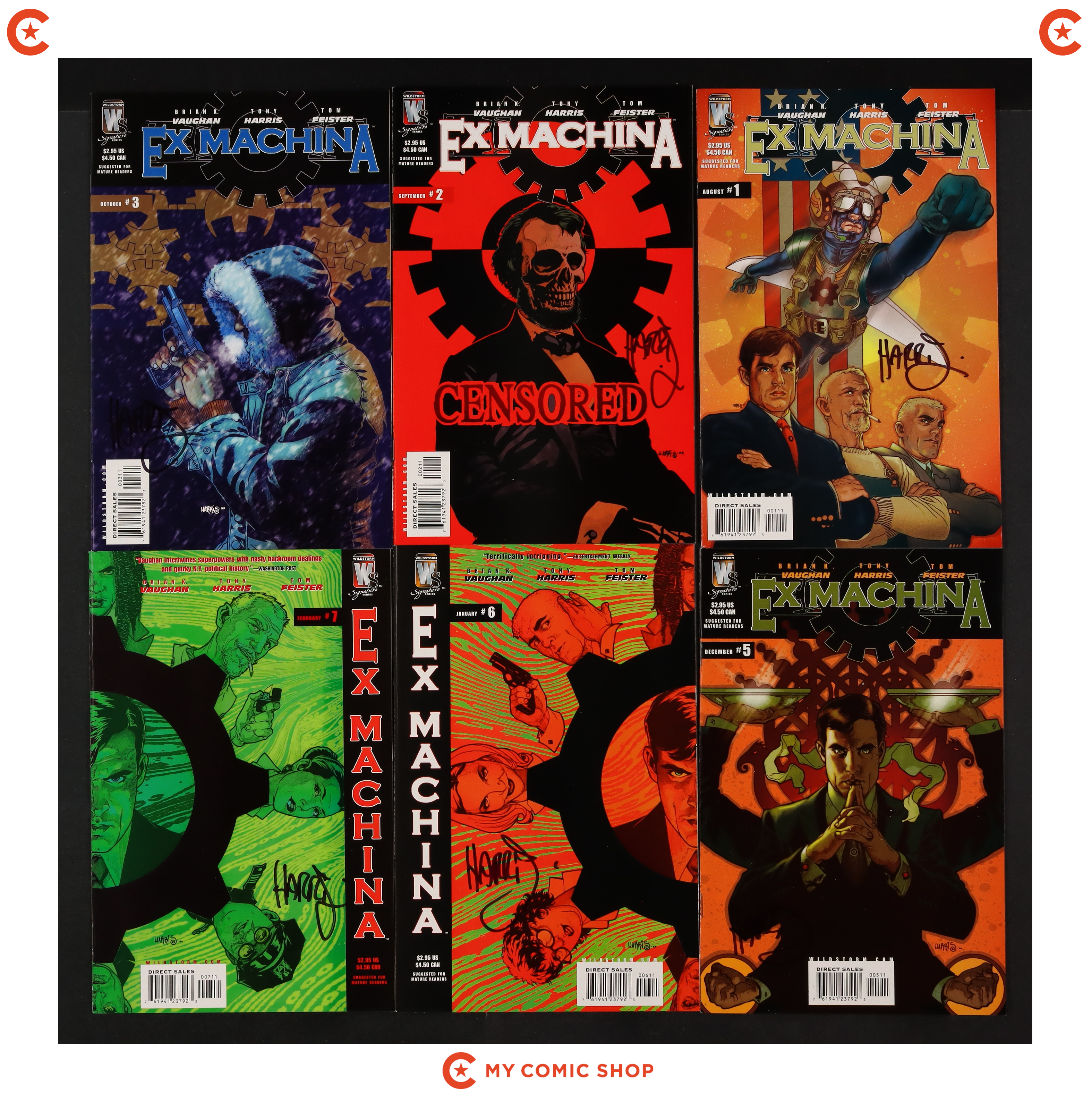Issues 1-3, 5-7 of Ex Machina (2004 DC/Wildstorm) signed by Tony Harris. No autograph certification is included. Most will grade in the