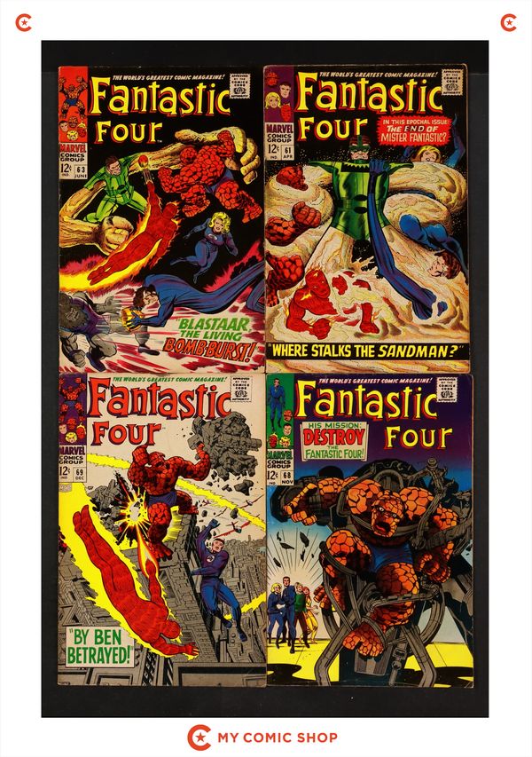 Issues 61, 63, 68, and 69 of Fantastic Four (1961 1st Series). Most will grade in the FN to VG range.