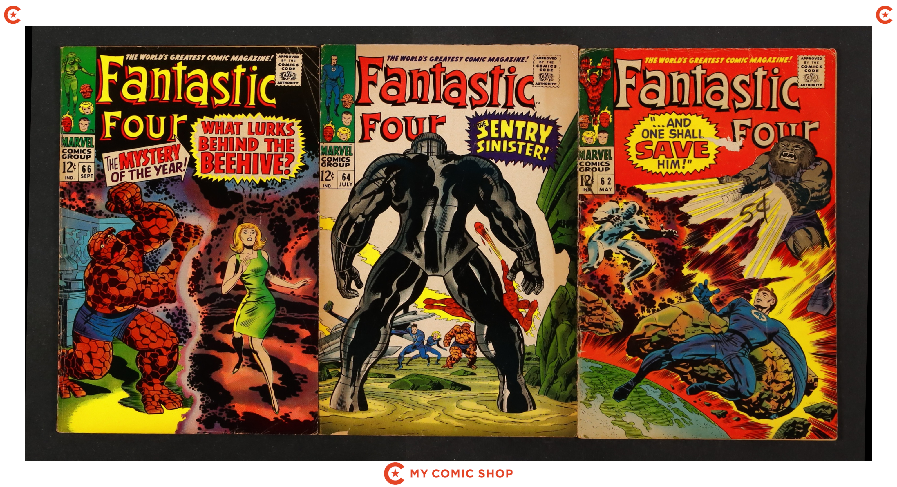Issues 62, 64, and 66 of Fantastic Four (1961 1st Series). Most will grade in the VG to GD range.