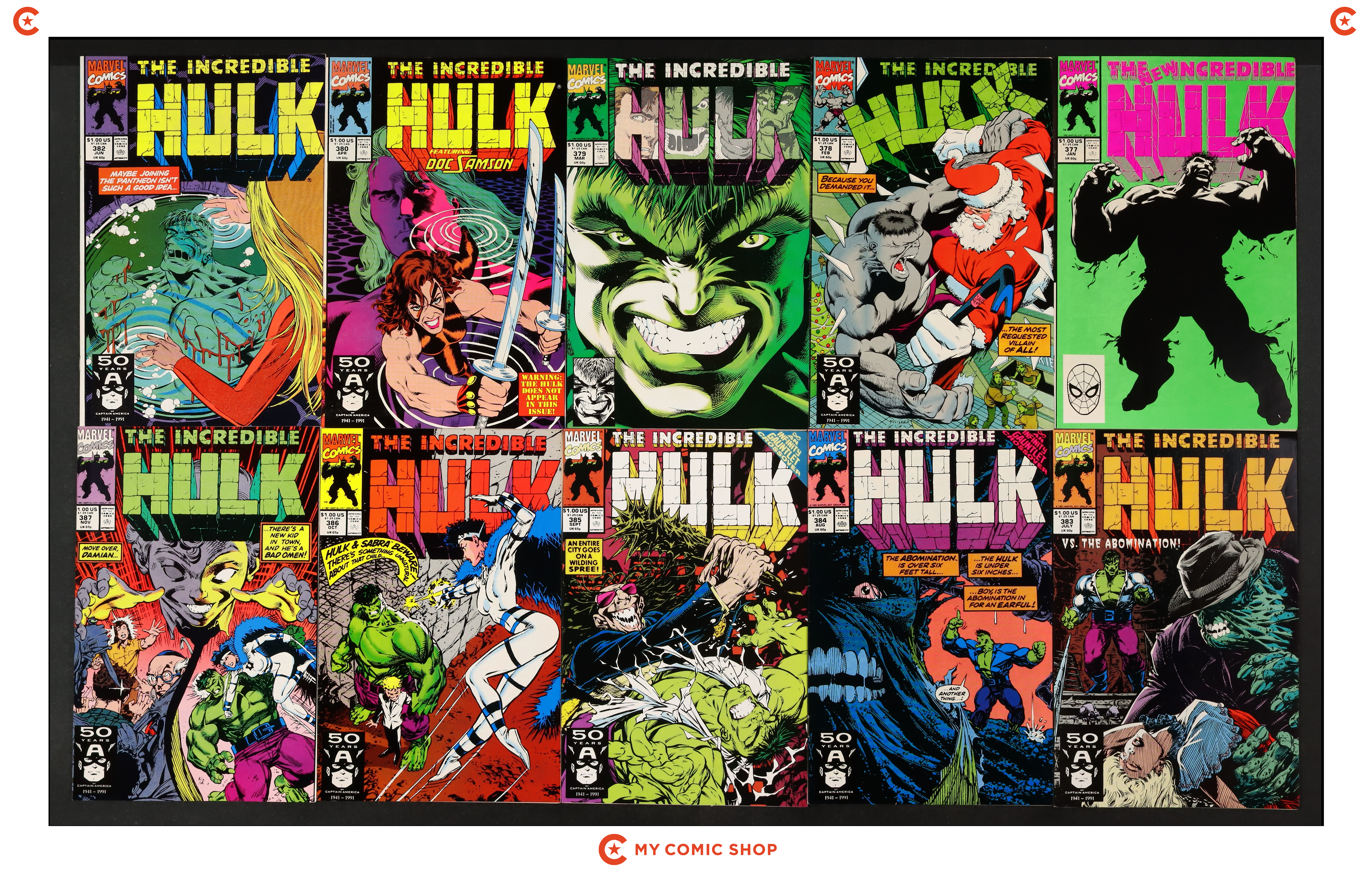 Issues 377A, 378-380, and 382-397 of Incredible Hulk (1962 Marvel 1st Series). Most will grade in the VF to FN range.